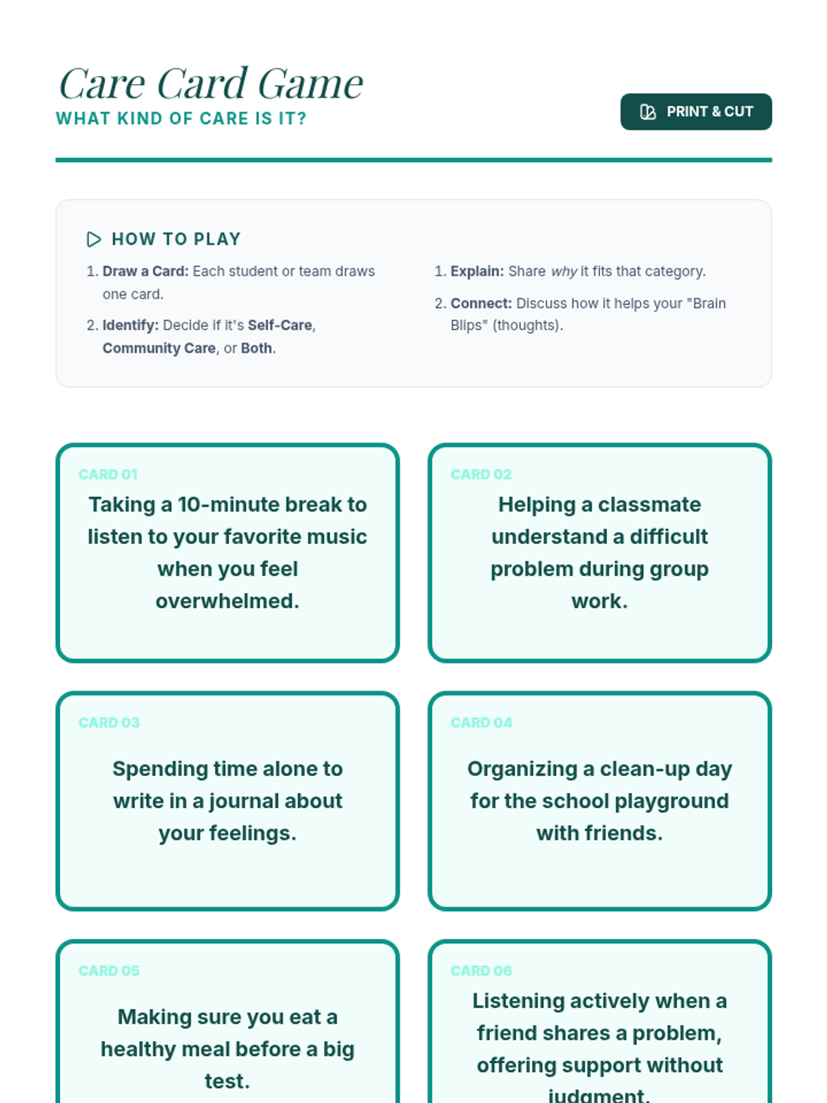 Focuses on healthy communication within romantic or significant relationships. Students learn 'Fair Fighting Rules' and how to distinguish between healthy conflict and red flags.
