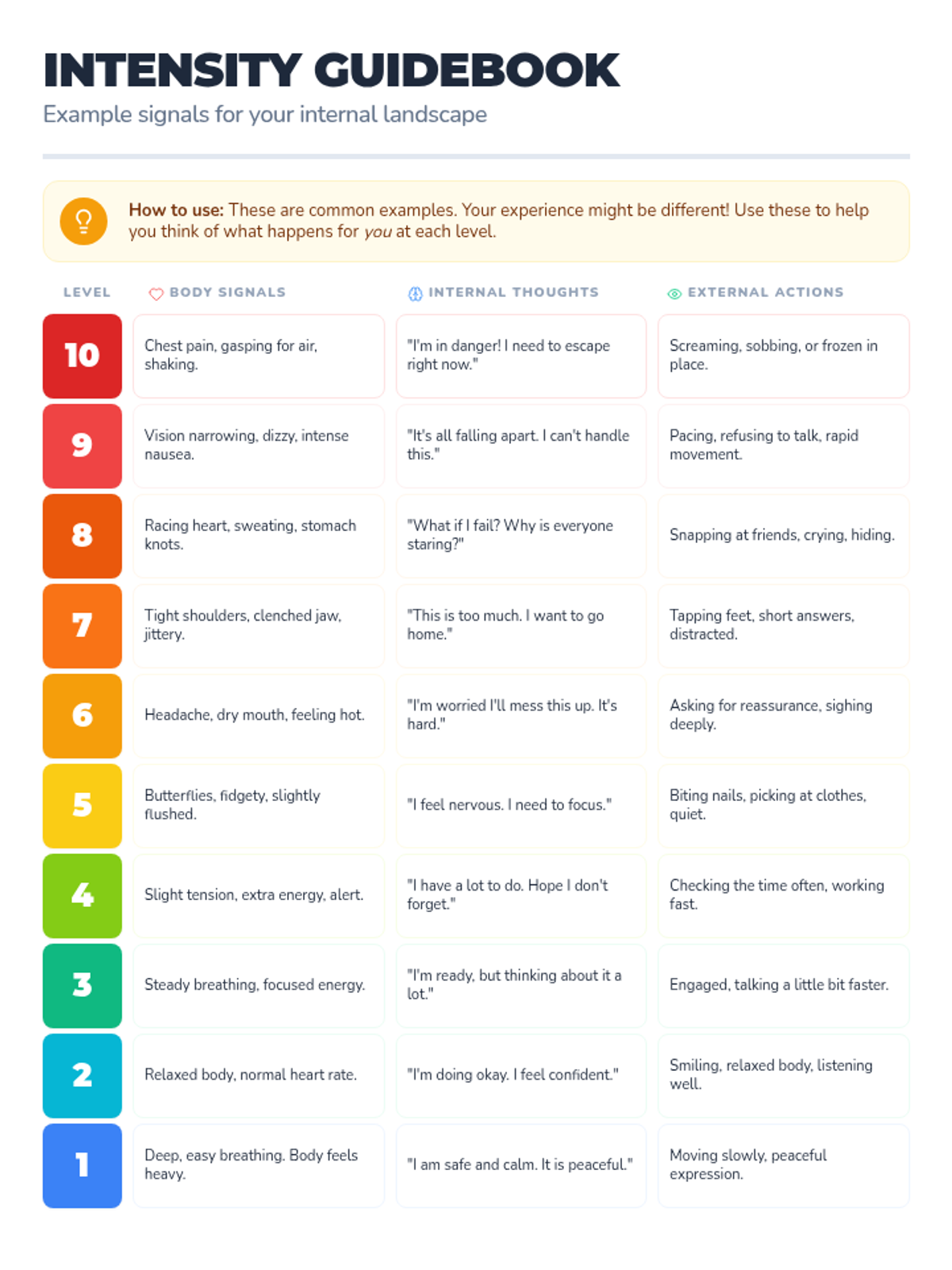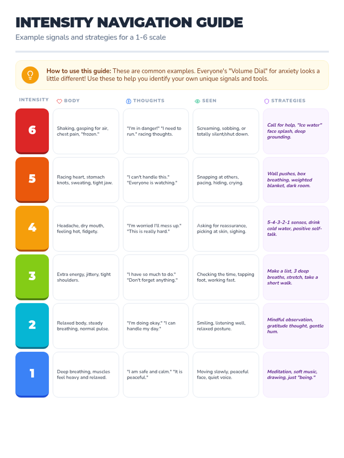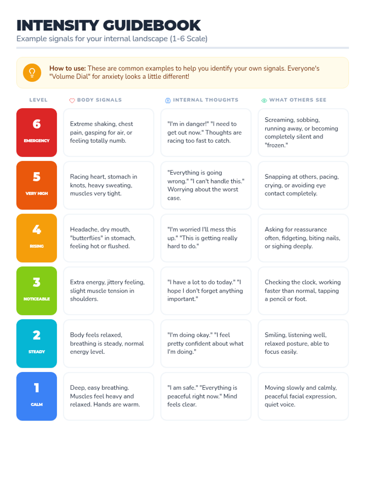 Identifying the physical sensations associated with anger, anxiety, and frustration to catch big feelings early.