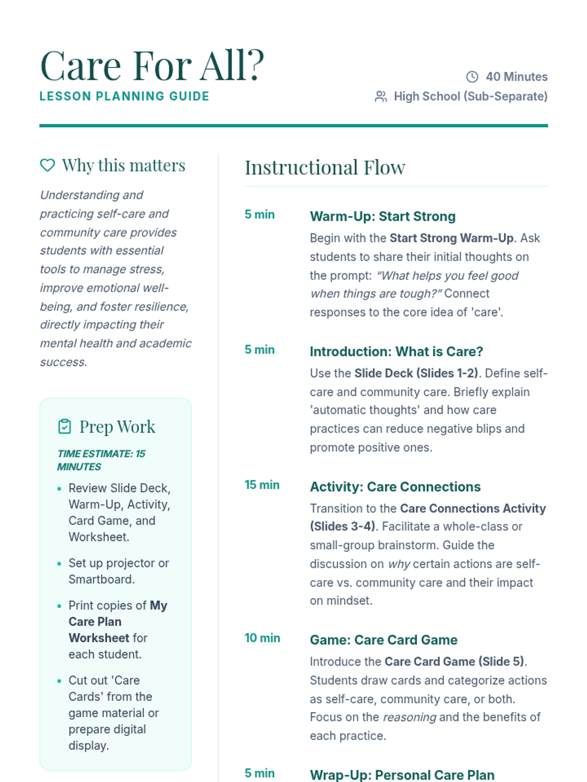 Future Planning Teacher Guide