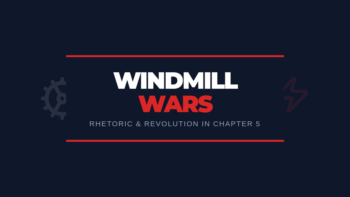 Explores Chapter 8's development of Napoleon's cult of personality, the manipulation of the Commandments (Logos), and the allegorical significance of the Battle of the Windmill.