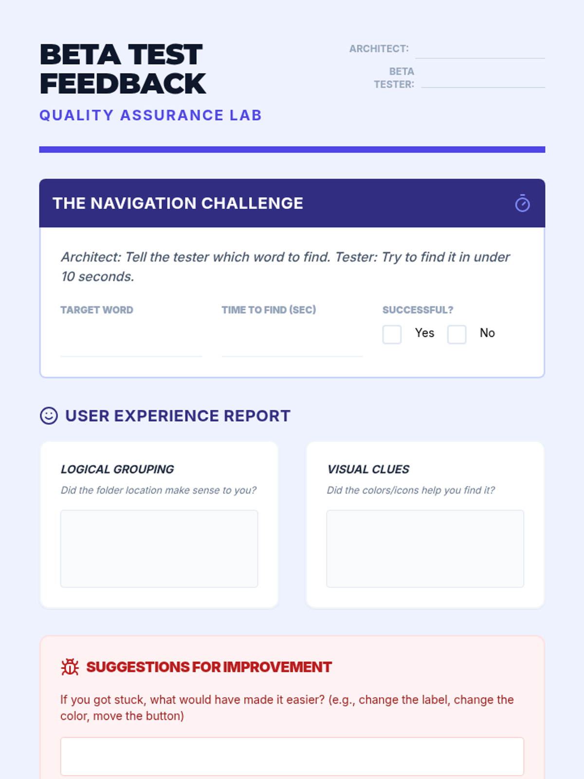 Students test each other's new folder structures to provide feedback on the intuitiveness of the navigation paths.