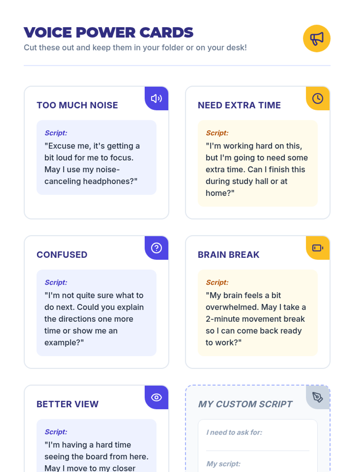 Equips students with strategies for handling difficult conversations and following up when accommodations aren't being met.