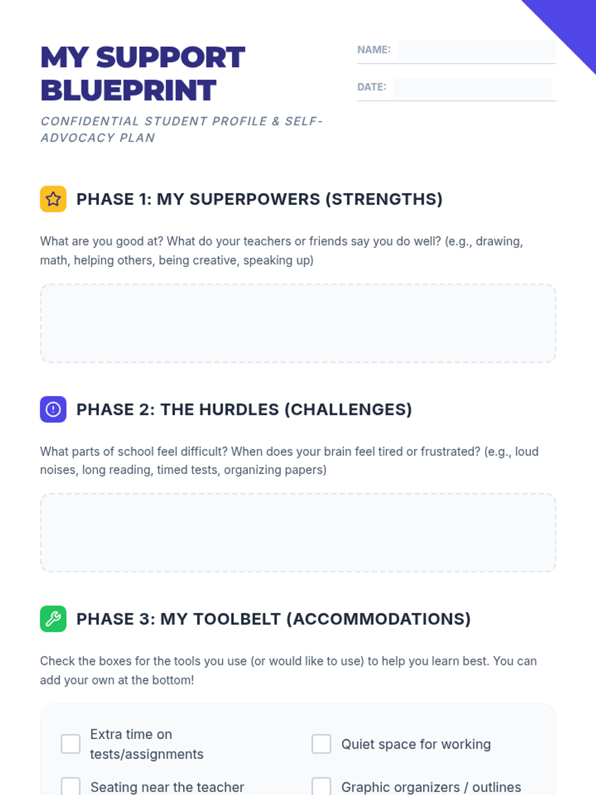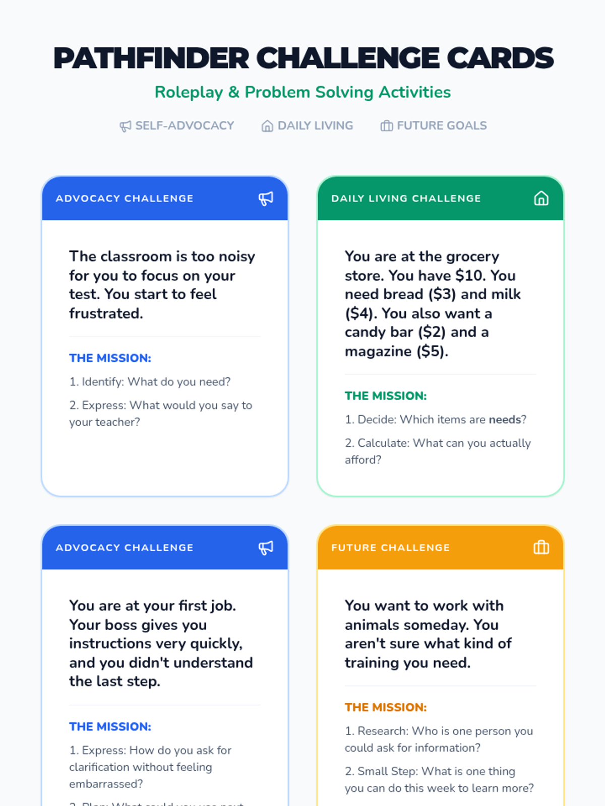 A comprehensive self-advocacy curriculum designed for young adults to navigate school, home, community, and the workplace with confidence. Focuses on personal identity (pronouns), legal rights (ADA/IDEA), and practical communication strategies.