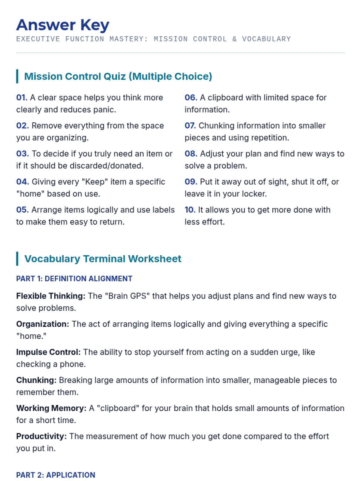 A comprehensive toolkit designed to help students master task initiation and working memory through structured routines and cognitive exercises. These resources provide practical strategies for overcoming procrastination and improving information retention.