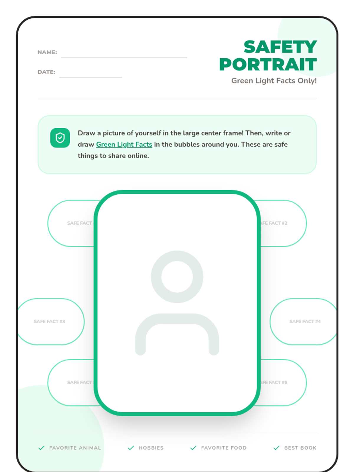 Using a traffic light metaphor, students practice identifying when they need to stop and ask for permission before using digital devices.