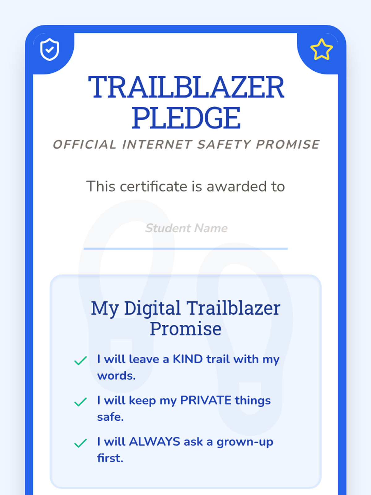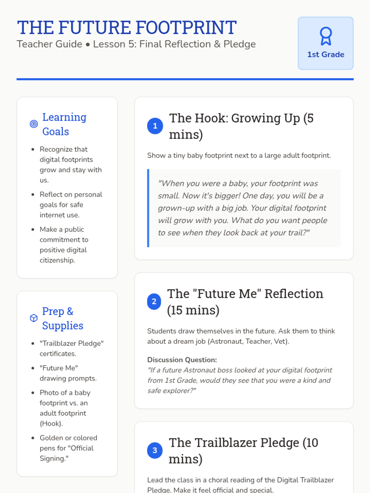 Students look toward the future and commit to being responsible digital citizens through a class pledge and self-reflection.