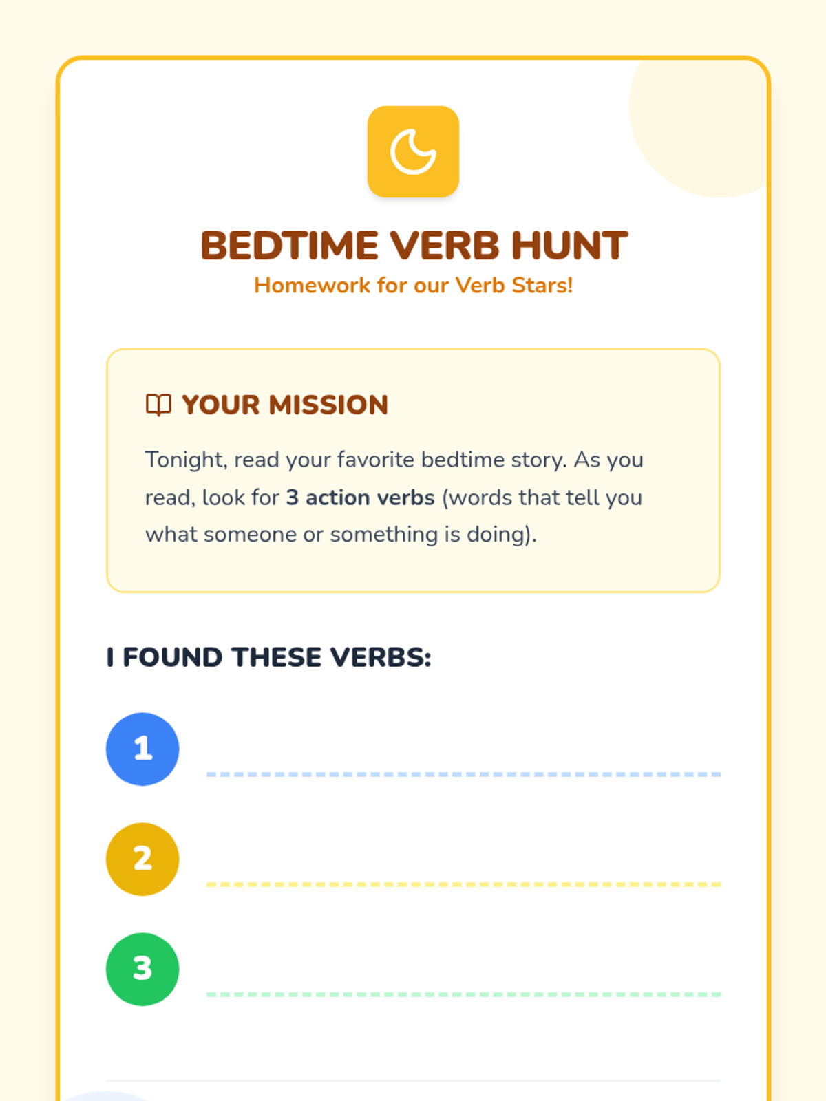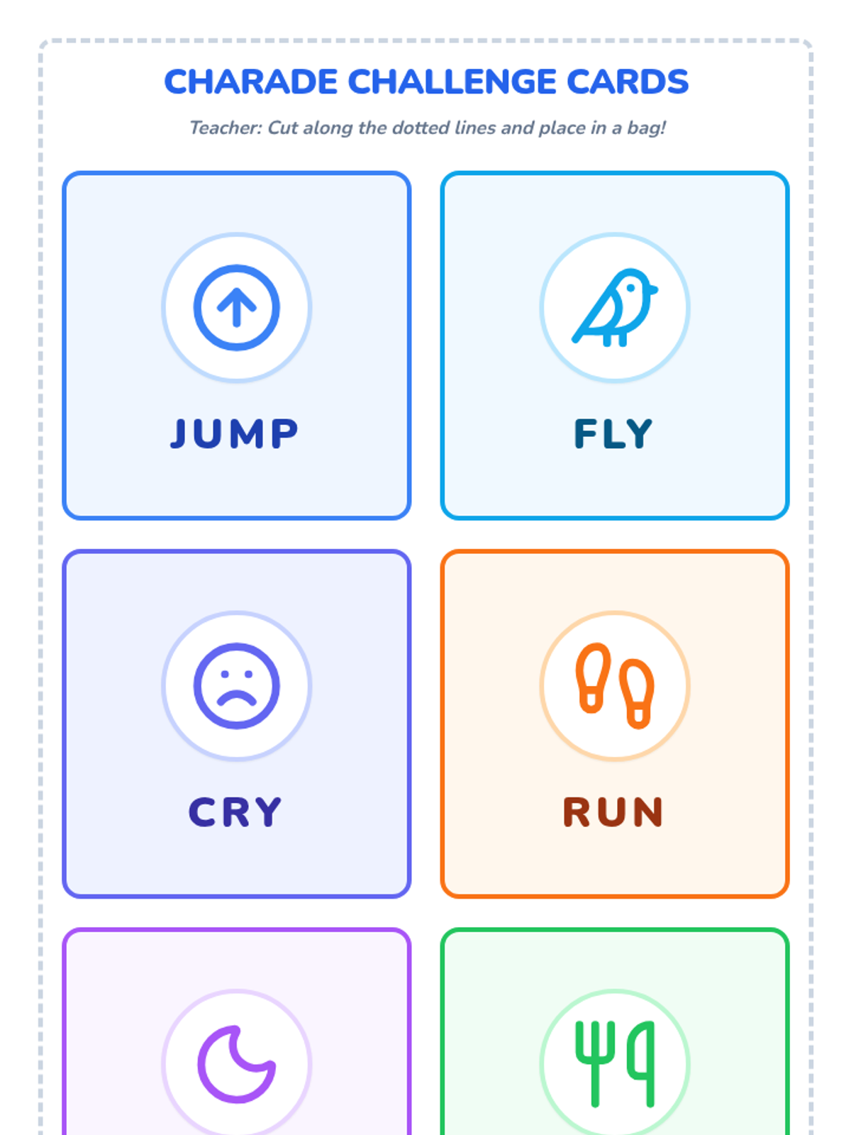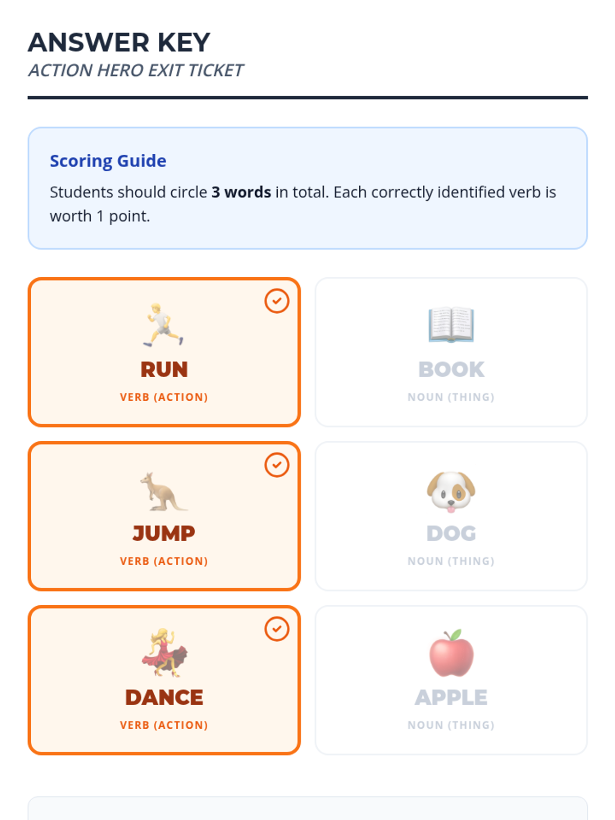 A high-energy lesson introducing 1st graders to action verbs through movement, a guided video viewing, and a hands-on charades game. Students will learn that verbs are words that tell us what nouns do.