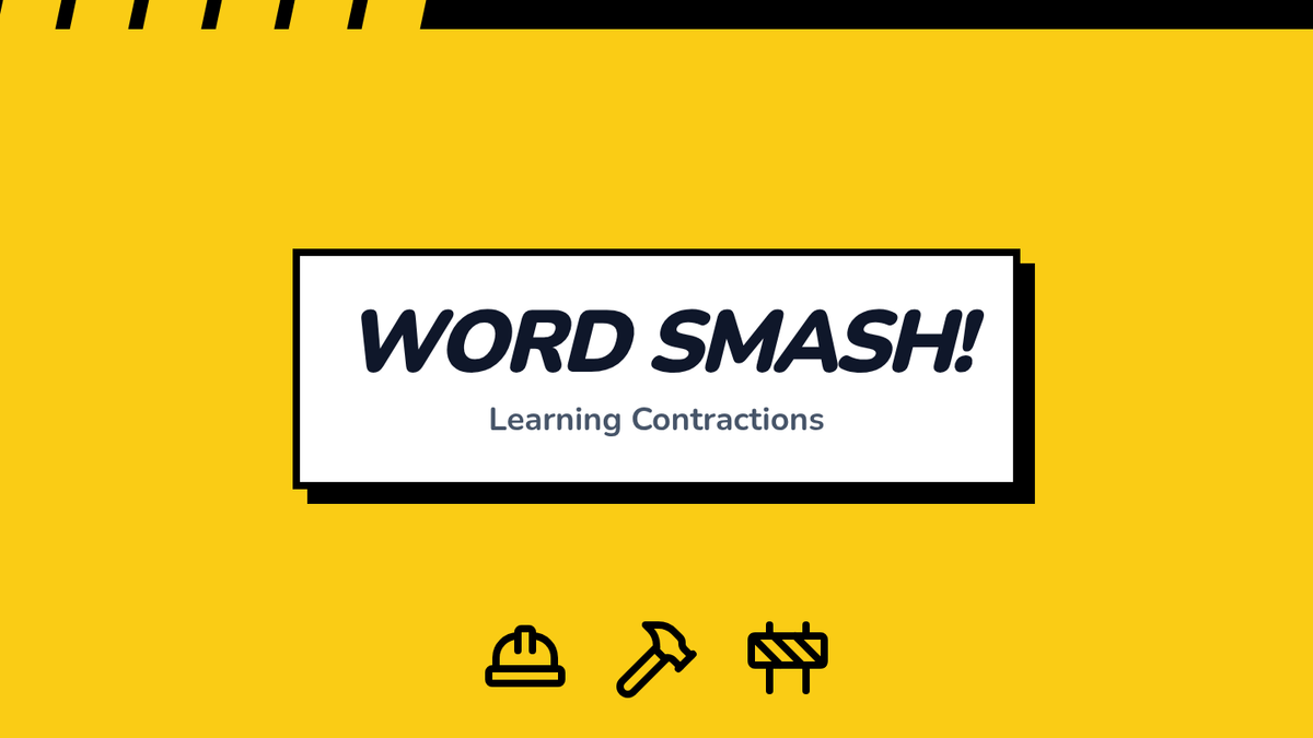 A fun, construction-themed lesson for 1st graders to learn about contractions using the 'Word Smash' metaphor. Students will identify, repeat, and physically react to long form words and their contracted versions.