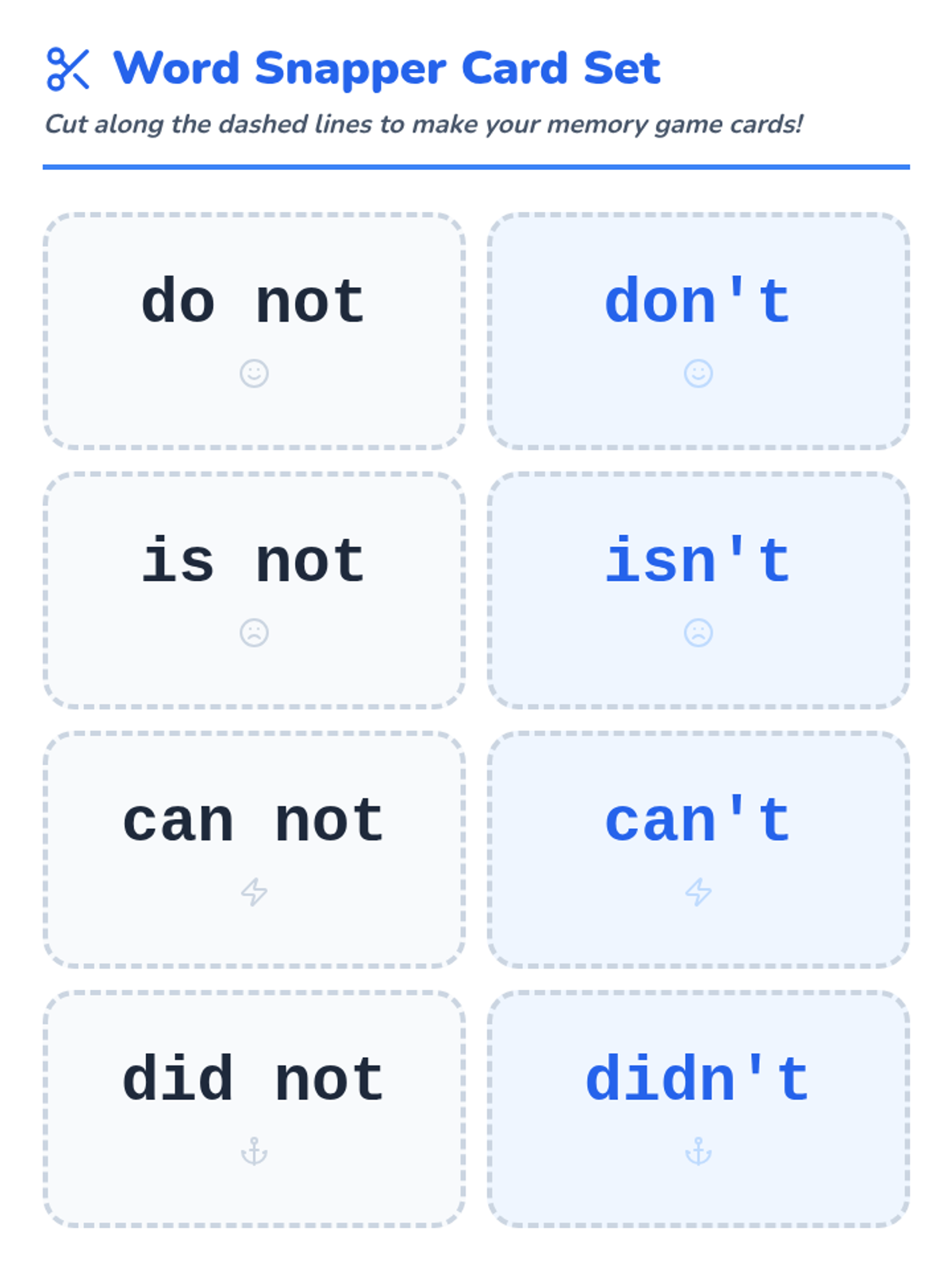 Students listen to sentences read in a robotic monotone versus a natural voice to understand why we use contractions. they will practice matching full word pairs to their contraction forms.