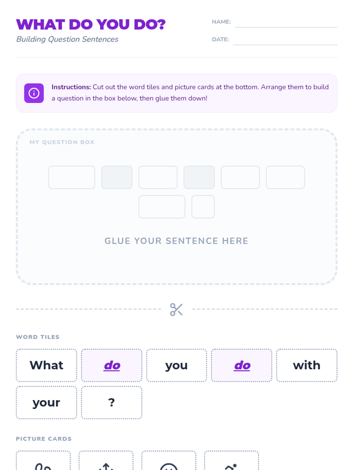 A foundational lesson for MLL students to master basic Subject-Verb-Object sentence structure using visual supports, scaffolding, and hands-on sequencing.