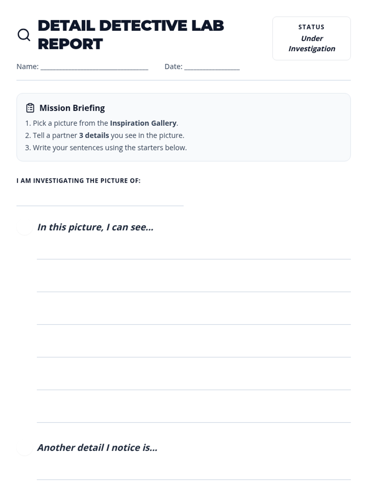 A final capstone lesson where students choose their own object or picture to describe and write about.