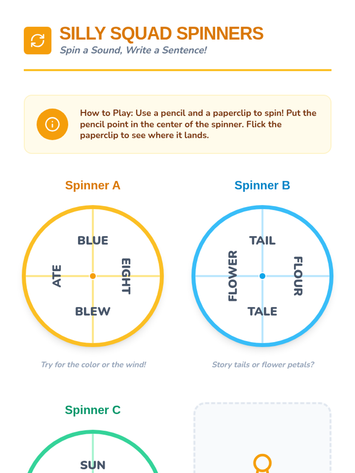 A game-based lesson where students generate homophones using spinners and write/illustrate silly sentences to demonstrate understanding.
