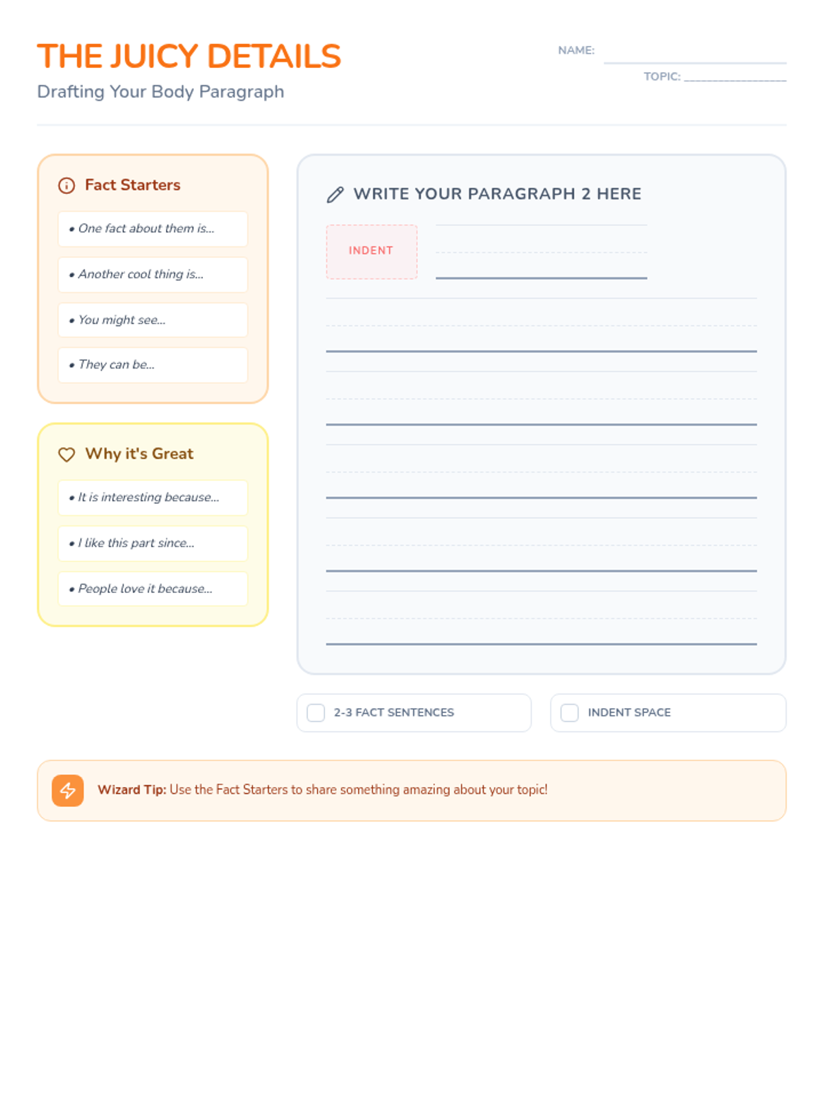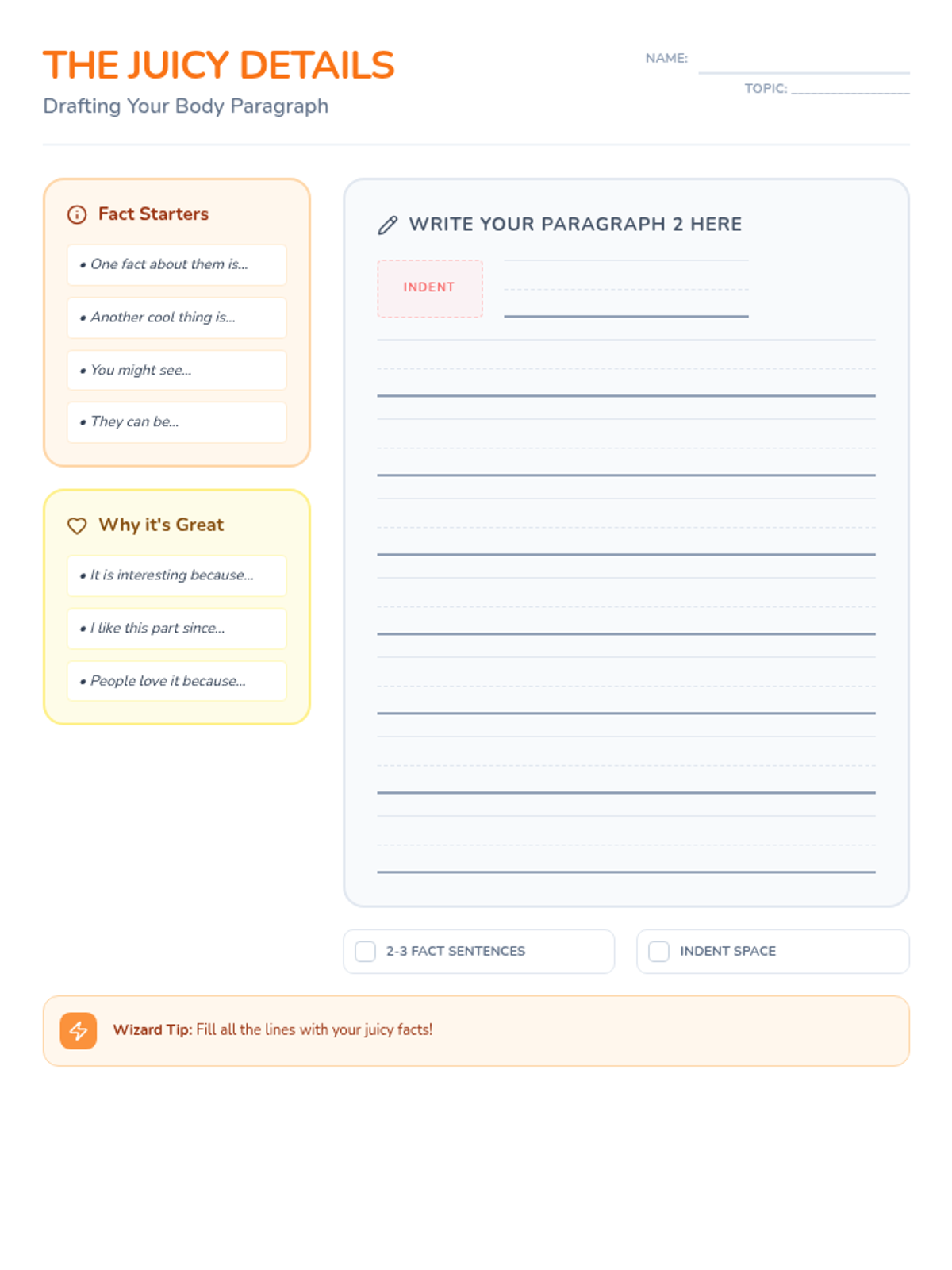 Applies the burger paragraph structure to informational writing using specific facts.