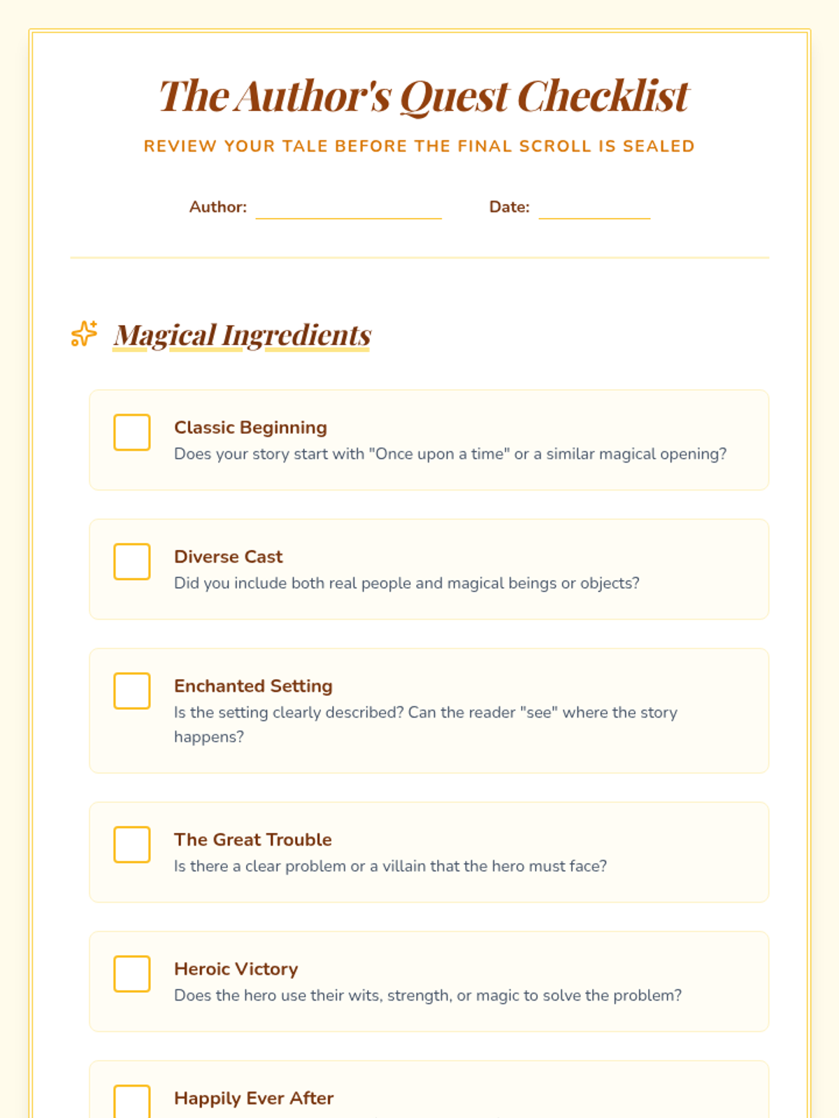 Fact Finder Checklist Worksheet