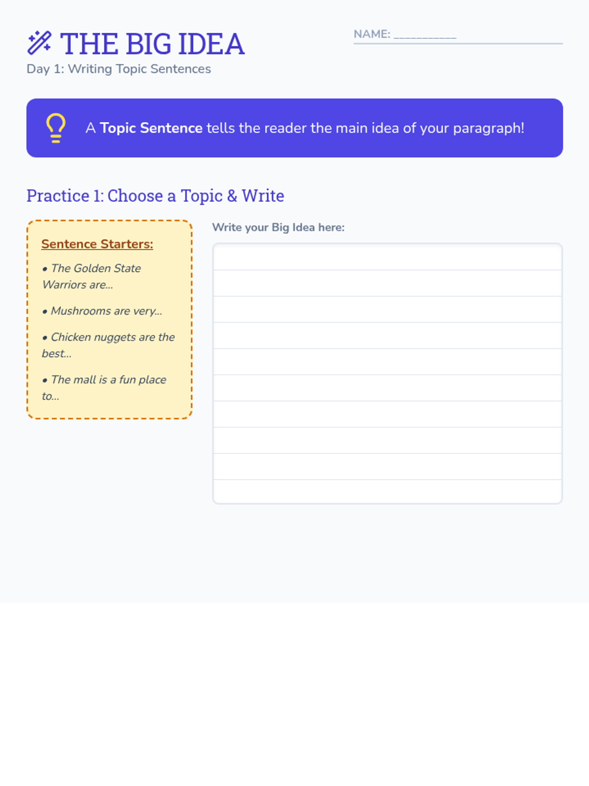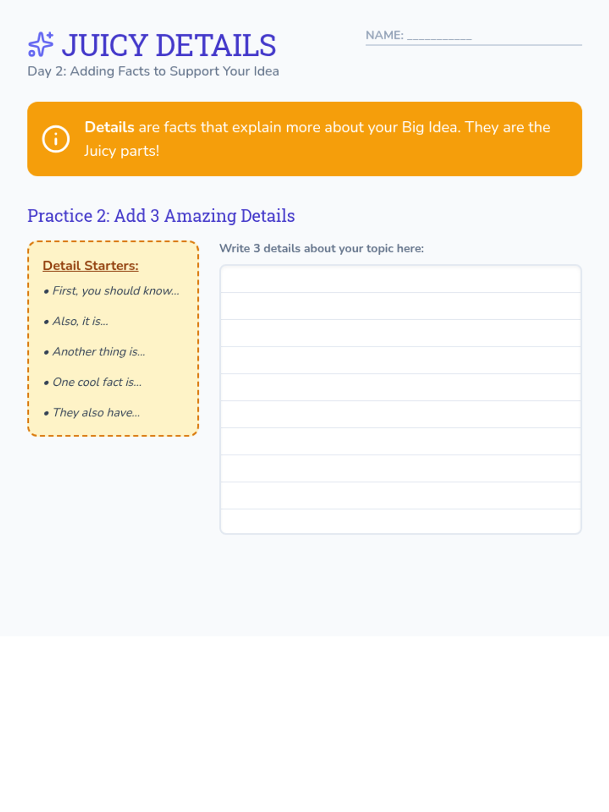 Own Words Challenge Worksheet