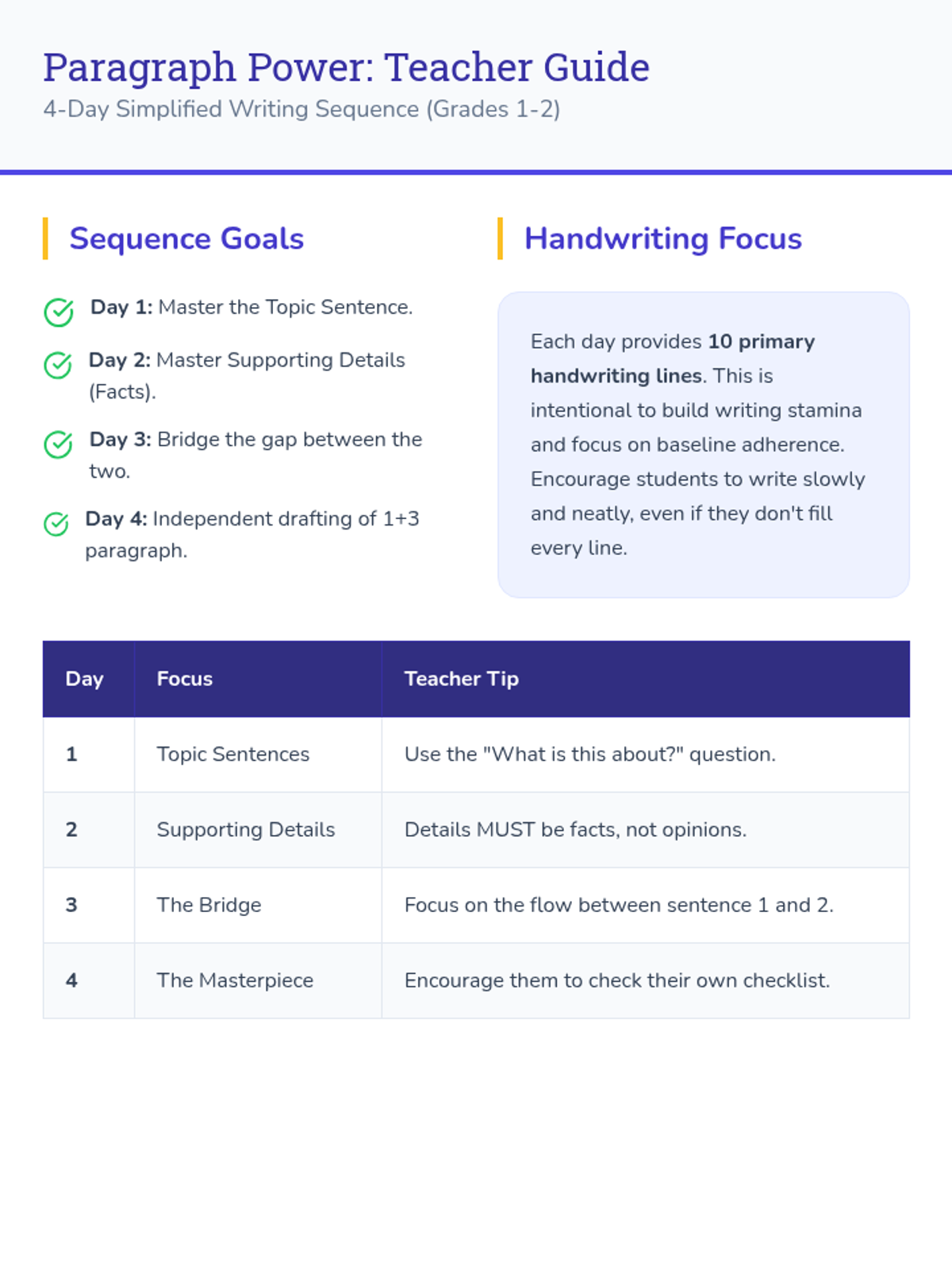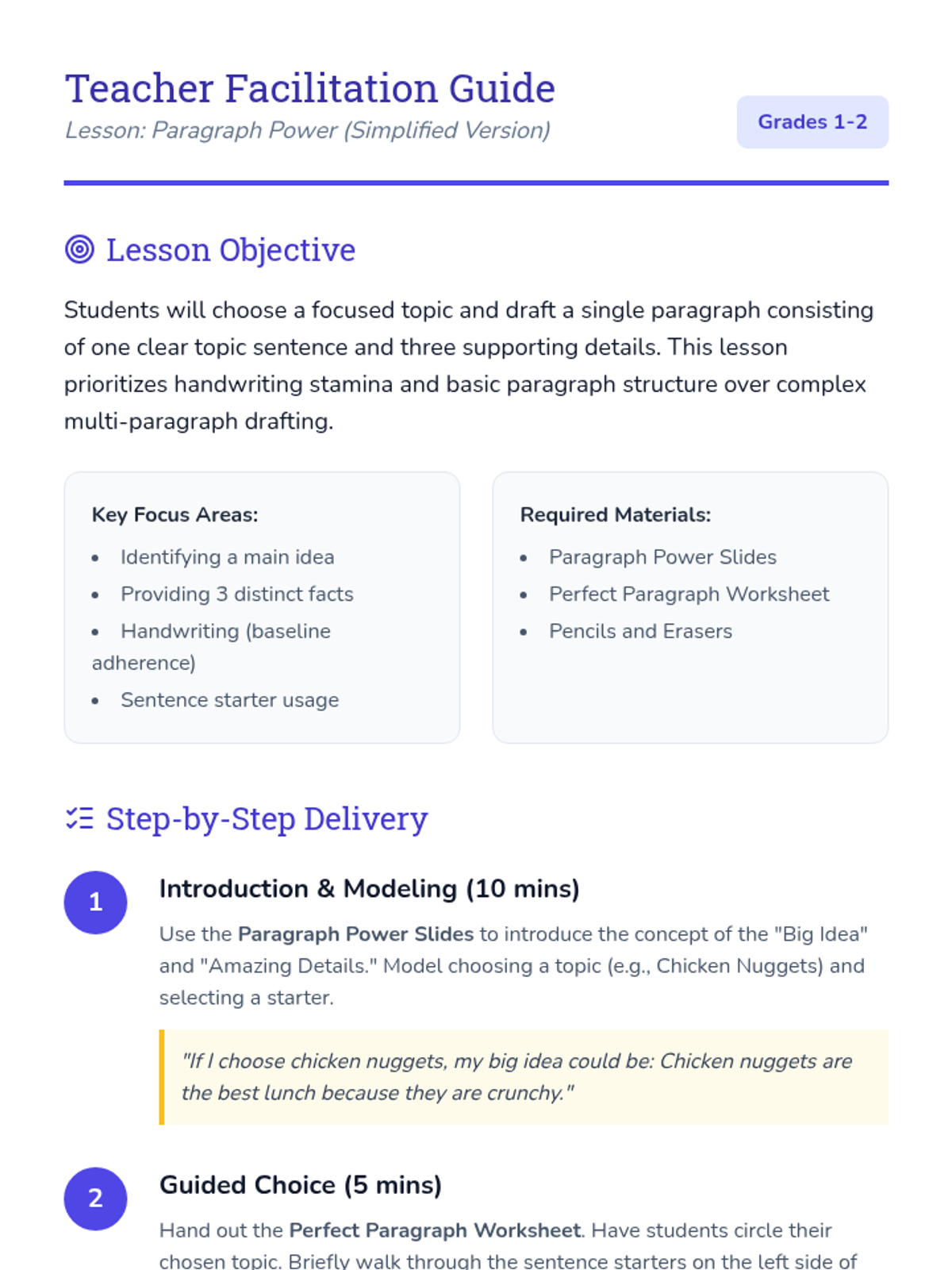 Introduces the difference between facts and opinions to prepare students for informational writing.