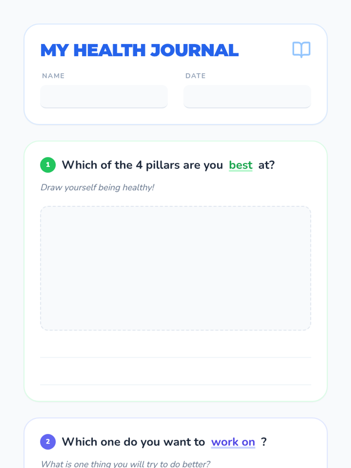 A comprehensive lesson teaching students the four pillars of health: hygiene, sleep, nutrition, and exercise. Students will learn why these habits are essential for their bodies through interactive slides, matching activities, and a personal routine checklist.