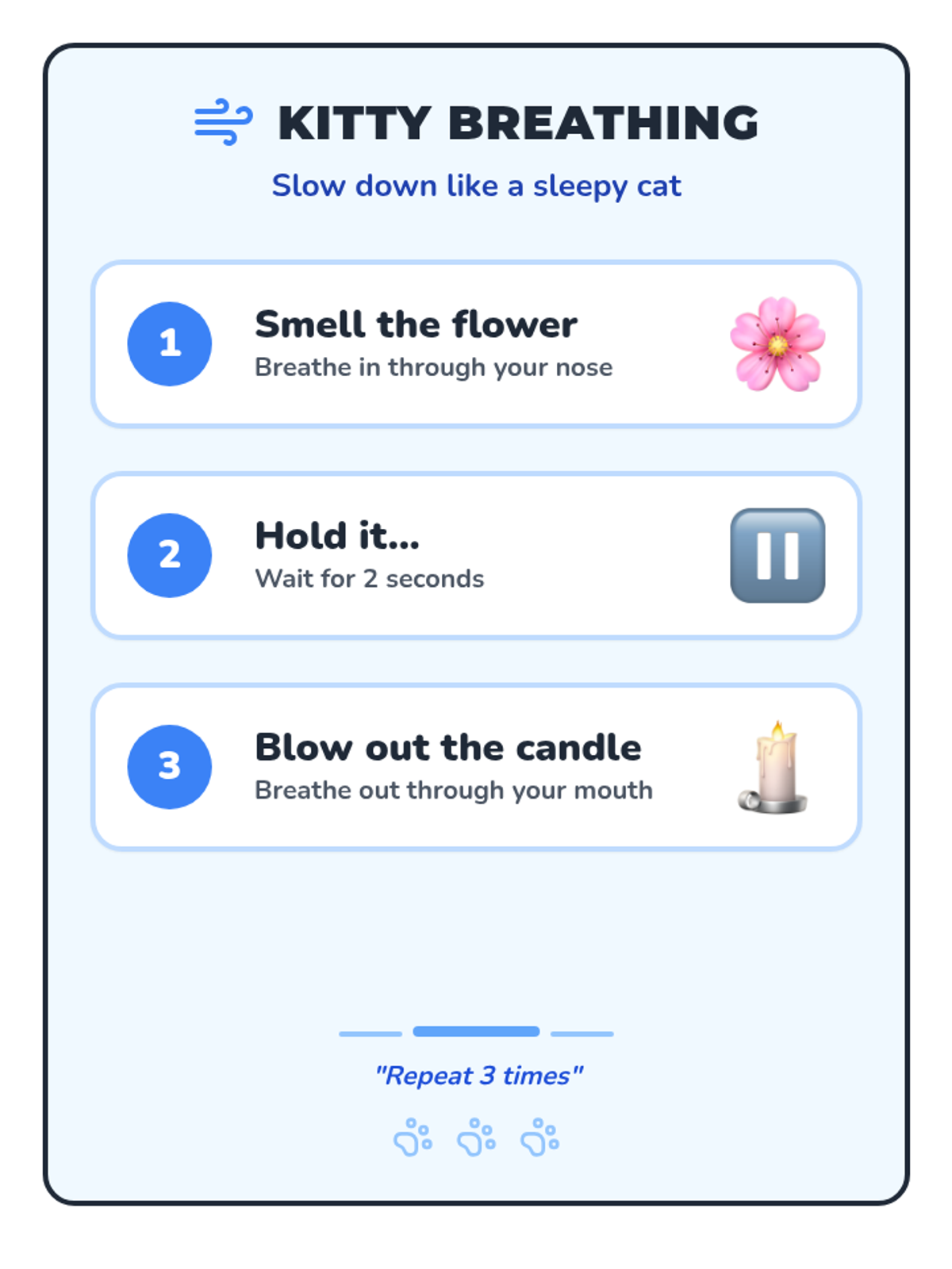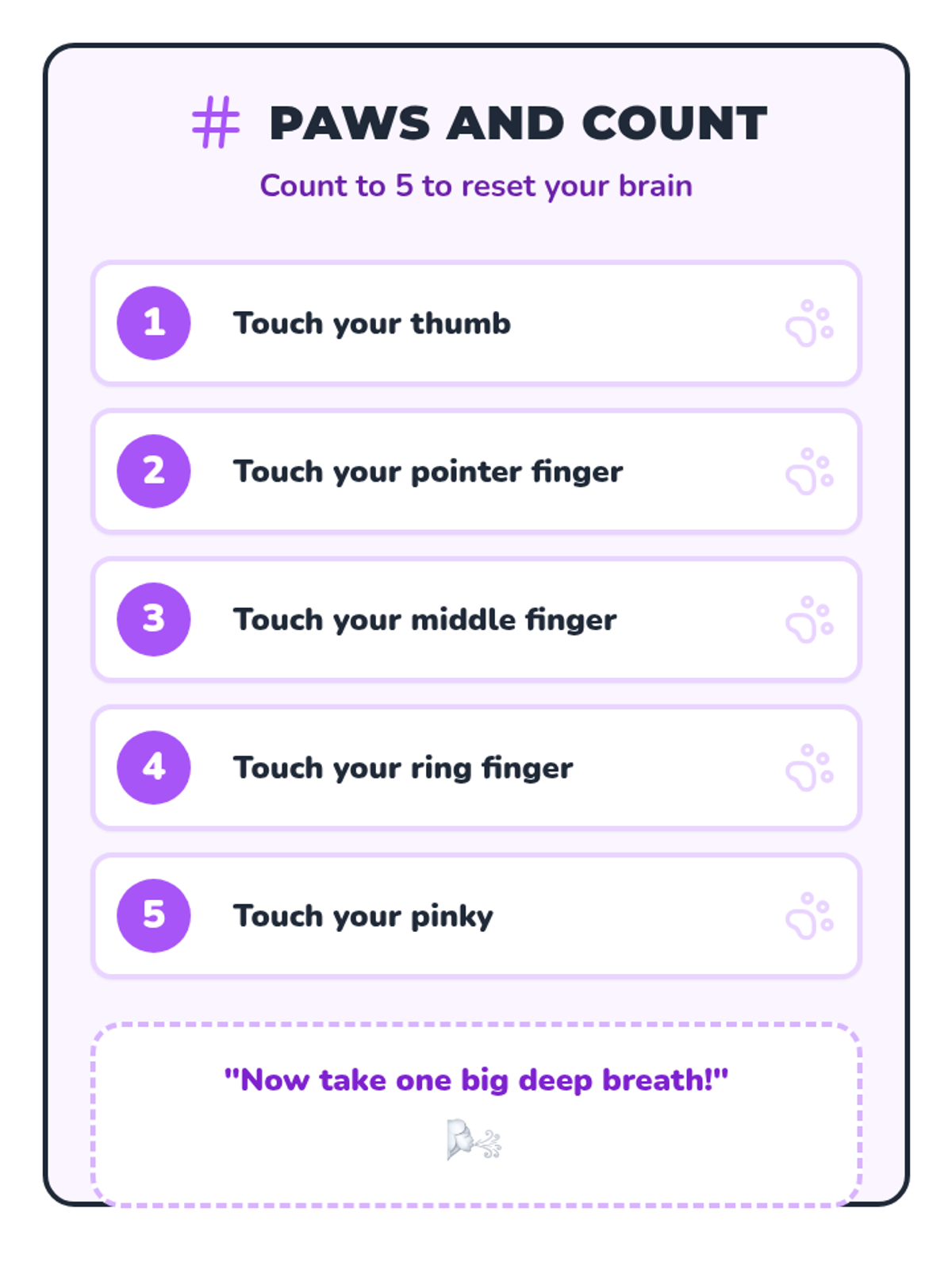 Students learn and practice three distinct breathing techniques to slow their heart rate and ground their bodies.