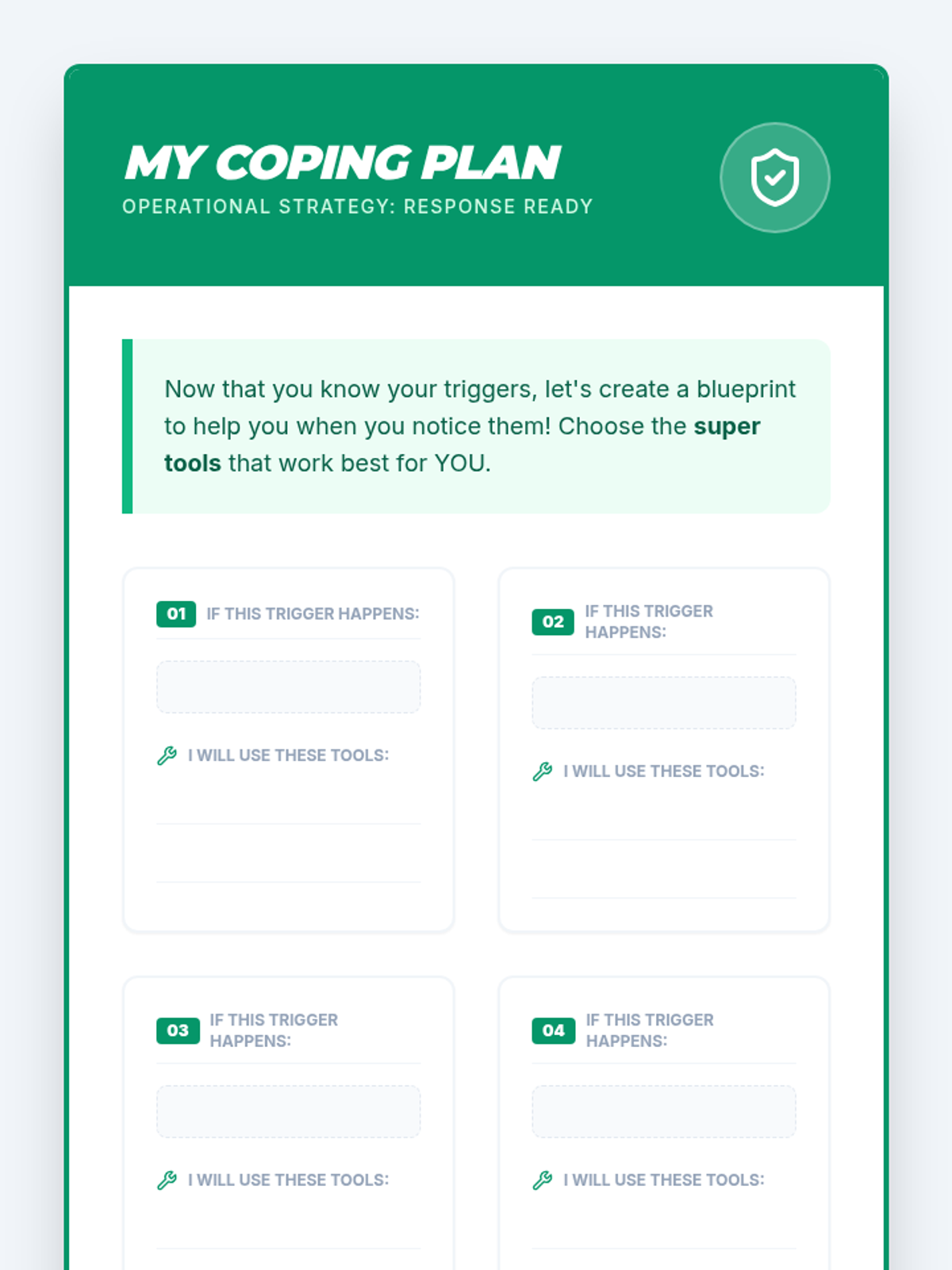 A midpoint review lesson designed to help students assess their progress in coping skills, update their personal strategies, and reflect on their growth. Using a 'Summit Scout' expedition theme, students evaluate their mastery of three core goals and refine their personal coping toolbox.