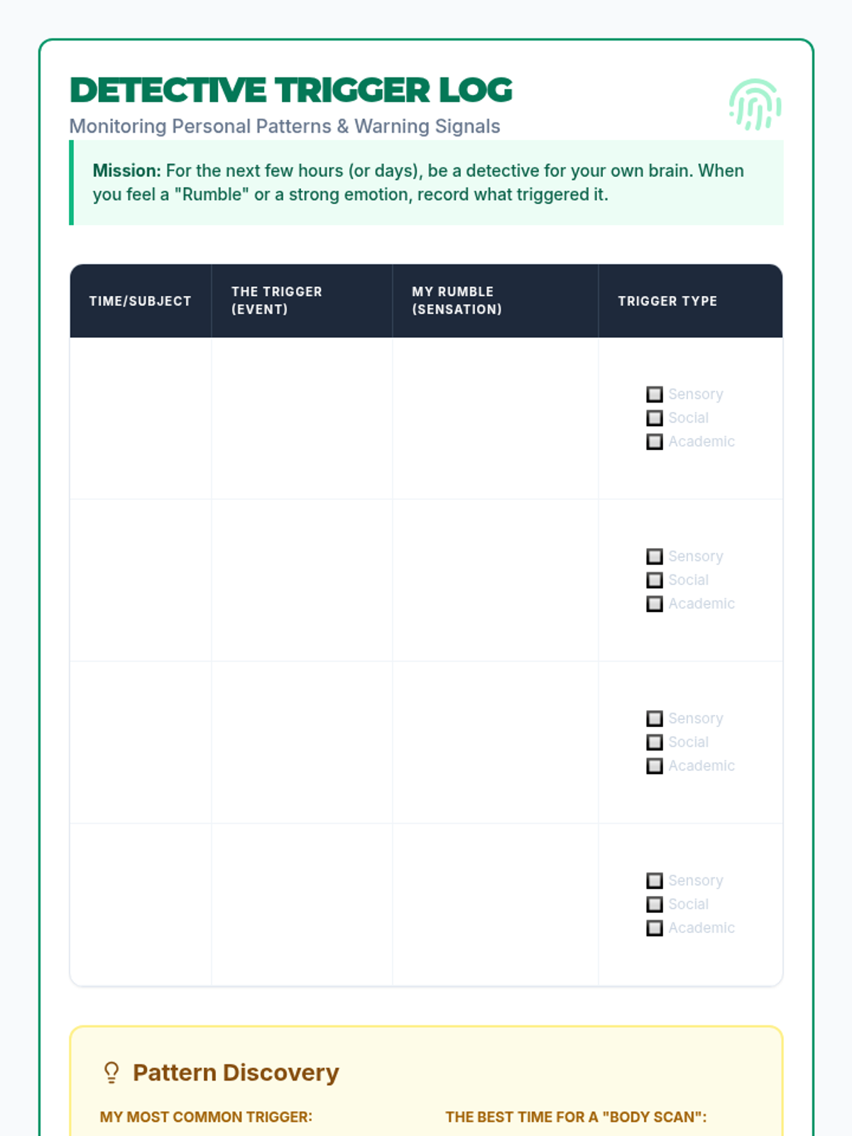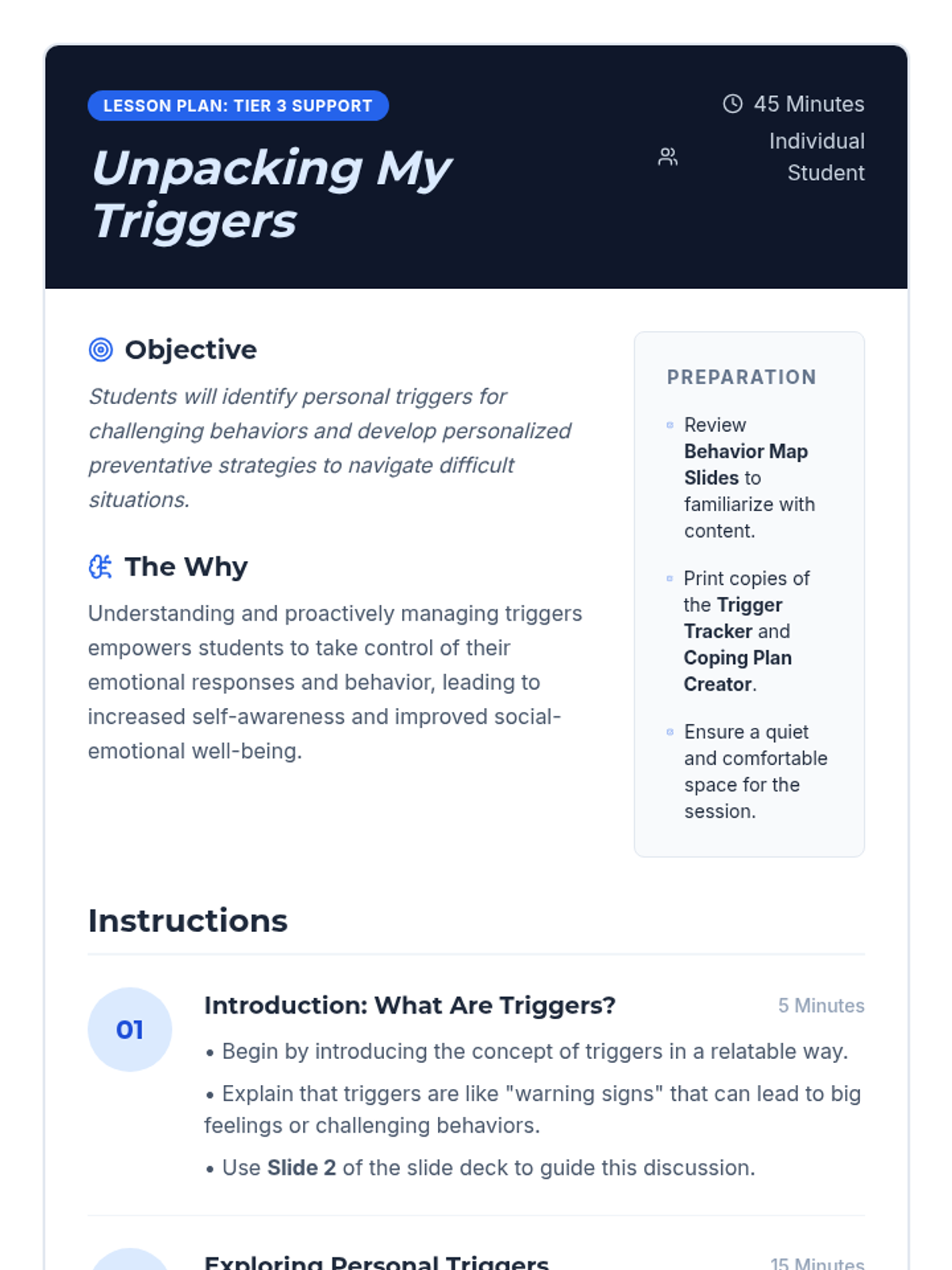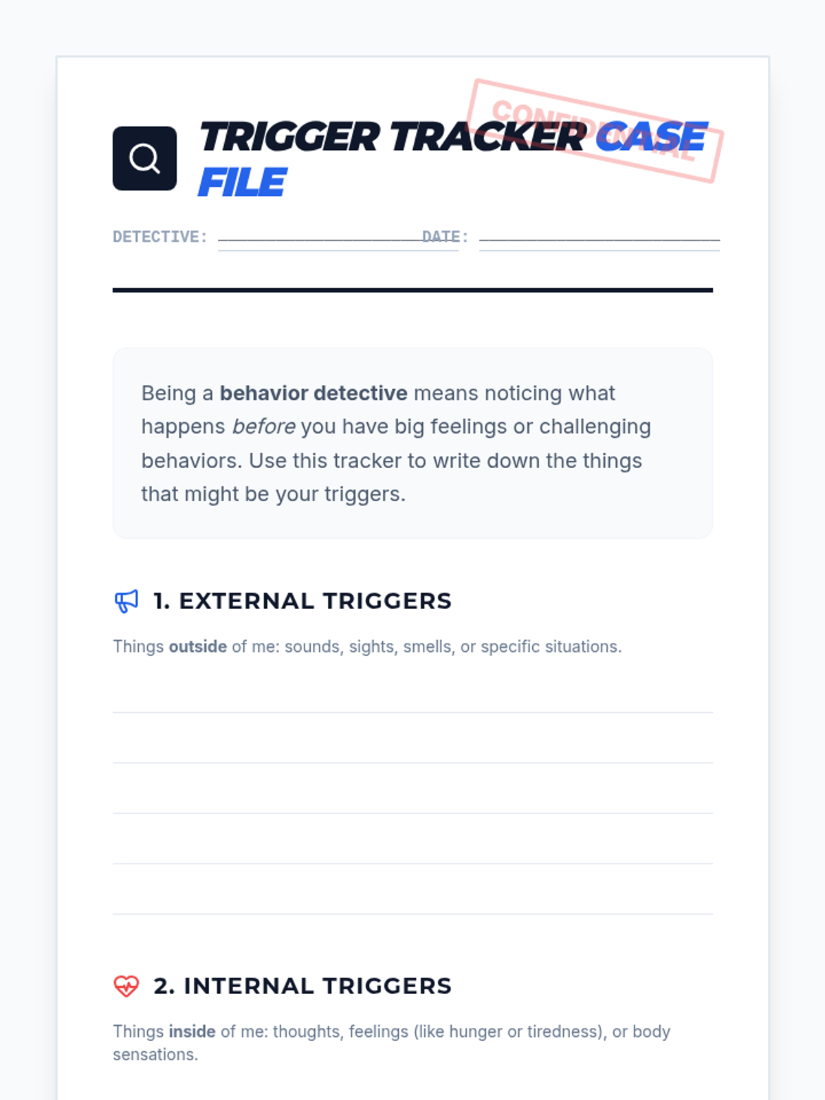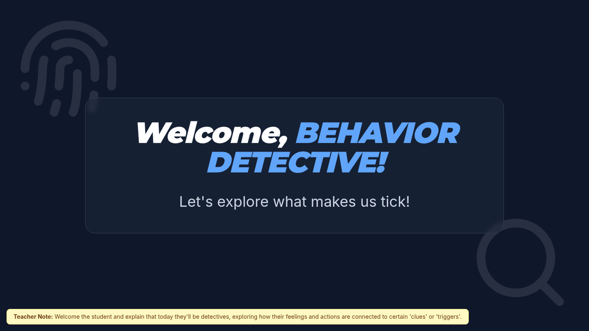 A targeted Tier 3 individual session helping students identify personal behavioral triggers and develop proactive coping strategies through a 'Behavior Detective' framework.