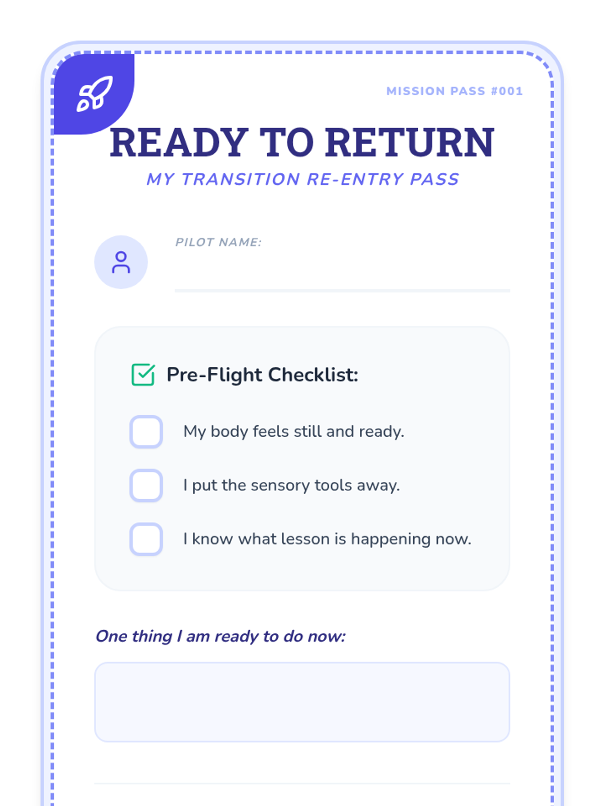 A targeted intervention for a fast-paced student to manage impulsivity, recognize triggers, and maintain 'safe mode' through a pilot-themed self-regulation framework.