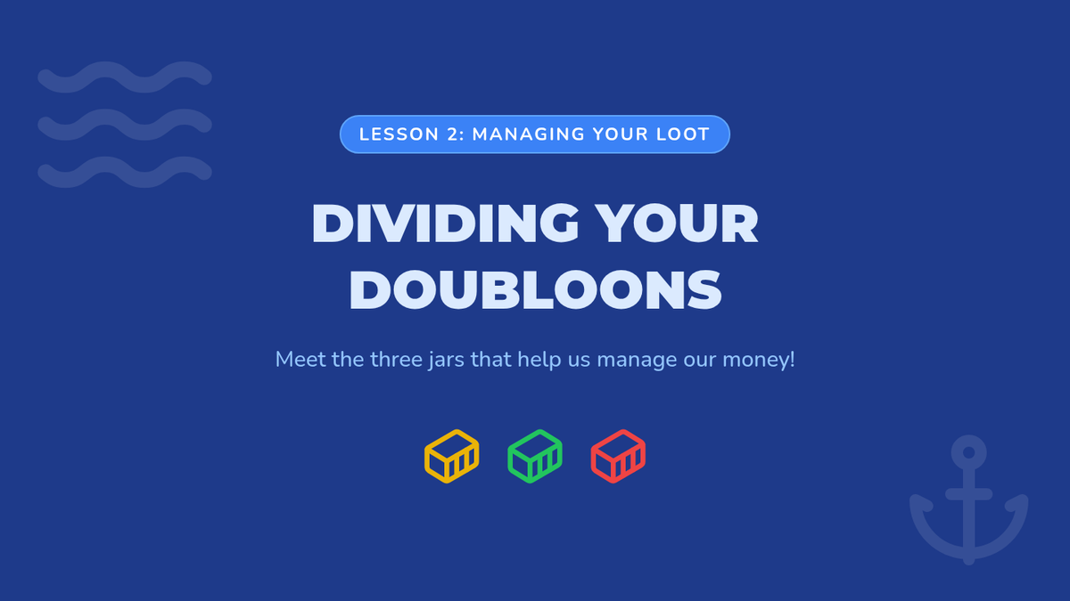 This lesson introduces a physical system for managing money using three containers: Spending, Saving, and Sharing.