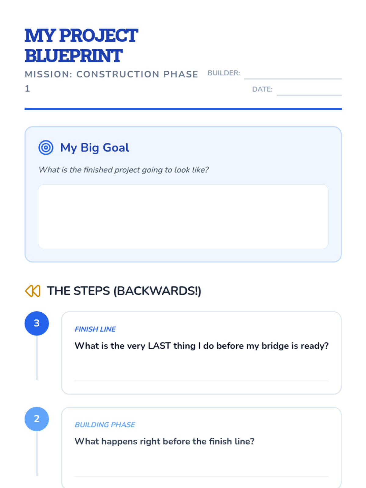Students learn to identify the absolute smallest unit of action required to begin a task. They practice ignoring the whole assignment to focus solely on the physical action needed to start.