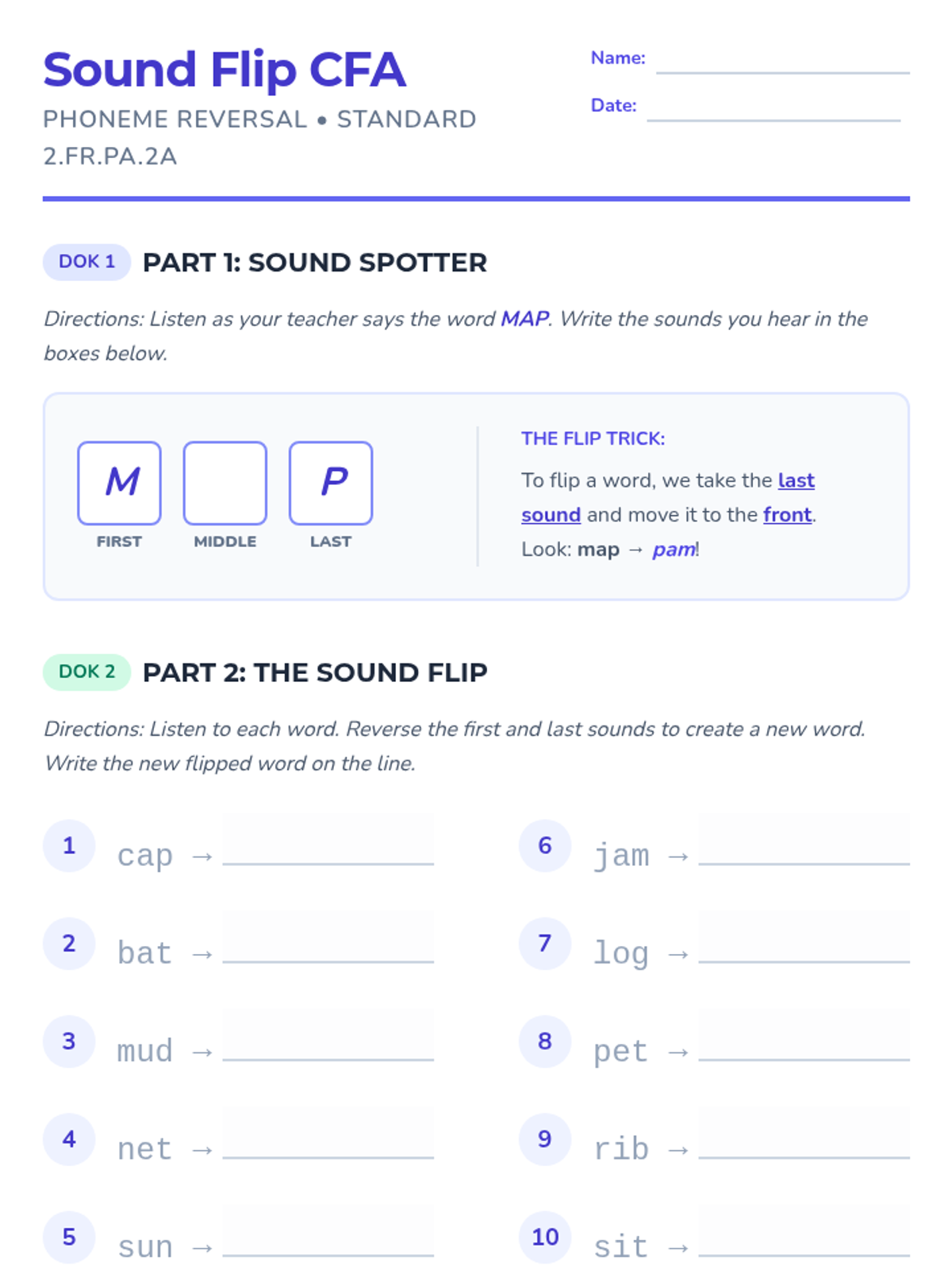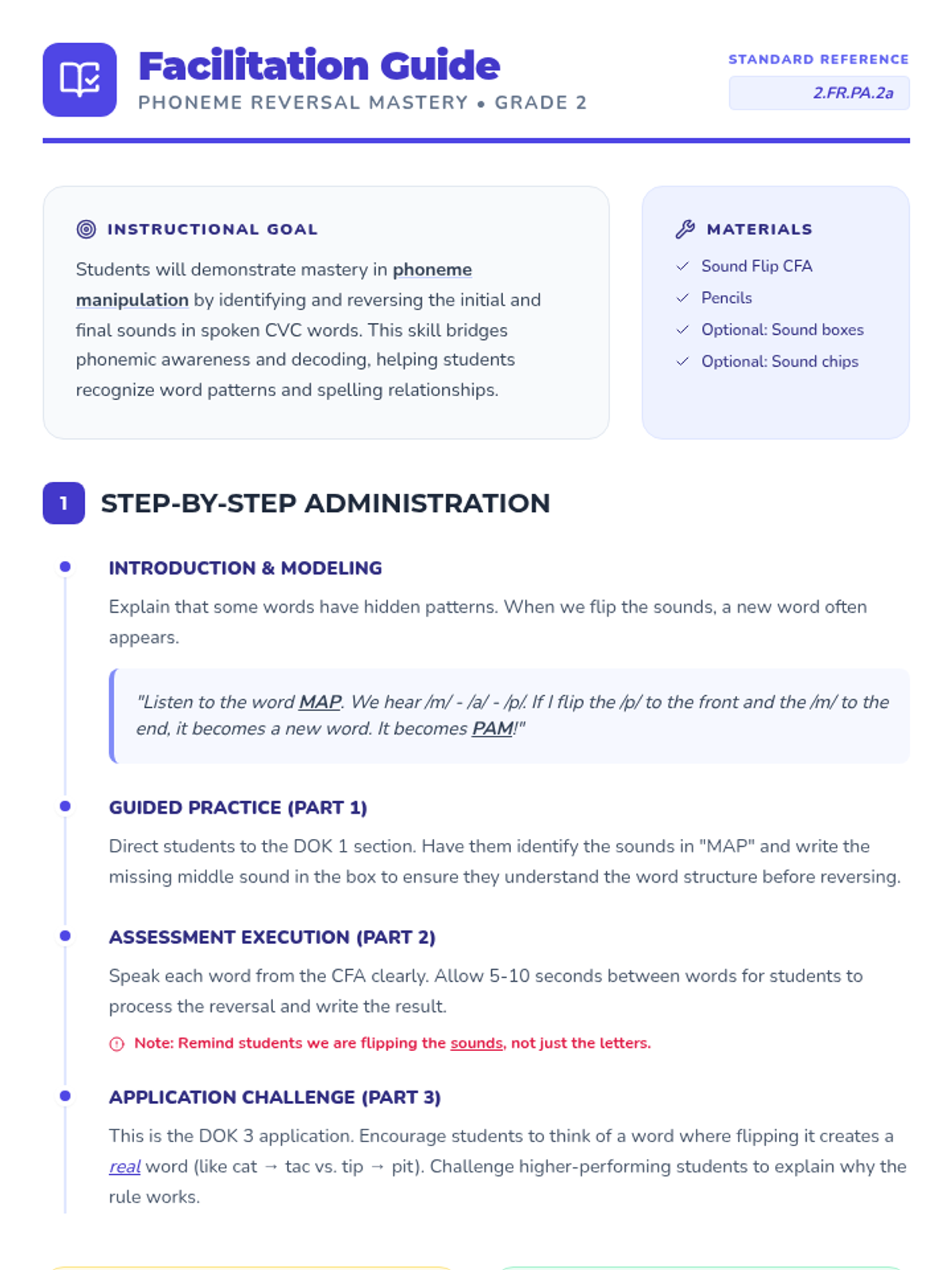 Phoneme ManipulationAdding, deleting, and substituting individual sounds within spoken words to develop advanced phonological awareness. Strengthens the mental processing required for decoding and encoding complex language structures.