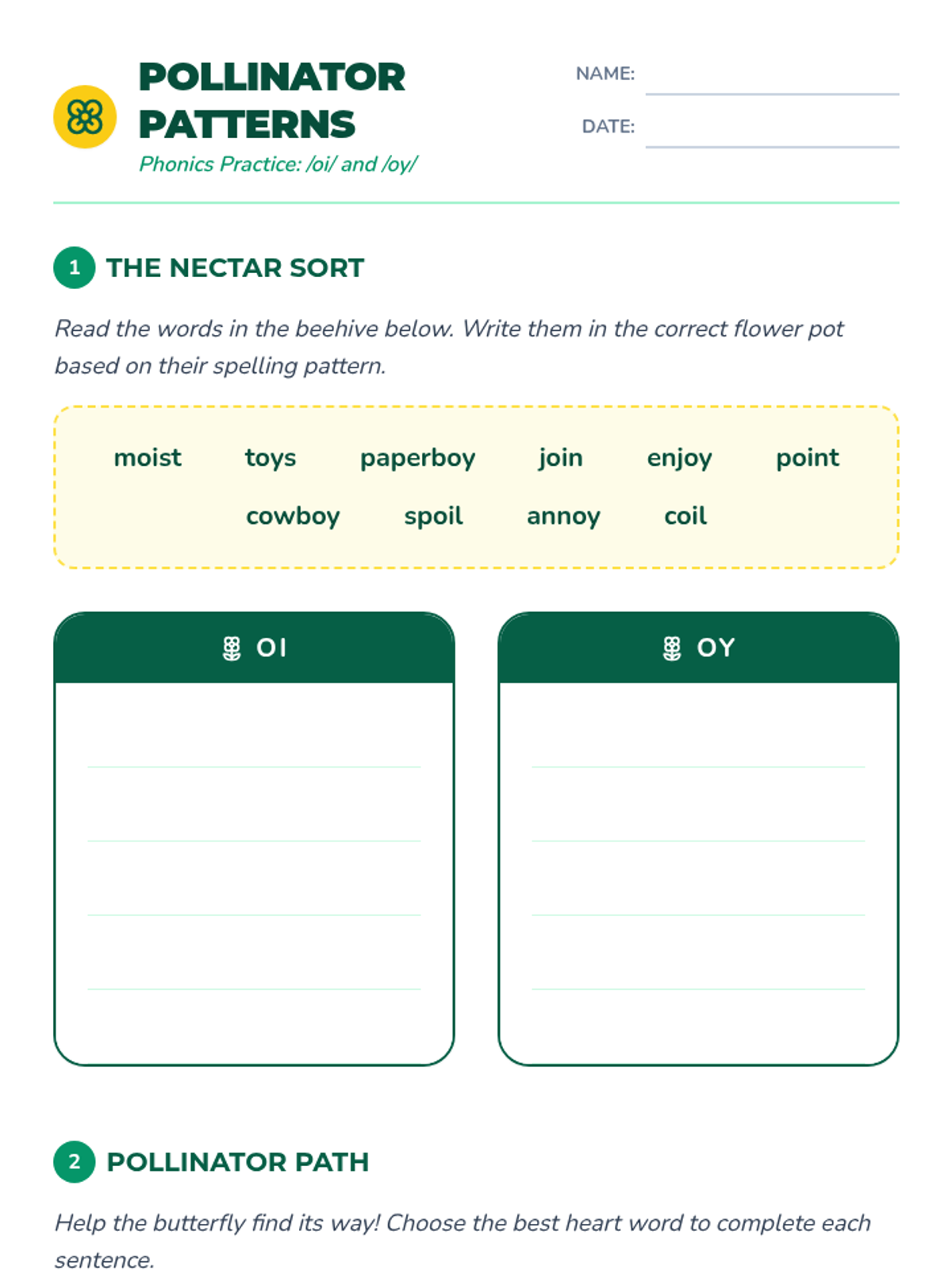 Diphthongs: Oi, Oy, Ou, OwVowel glides and spelling patterns for the /oi/ and /ou/ sounds using letter combinations oi, oy, ou, and ow. Strengthens decoding and spelling accuracy through word analysis and phonemic awareness.