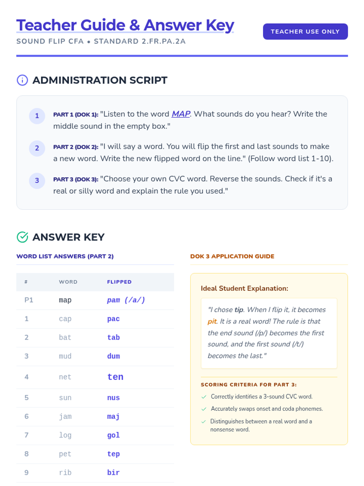Short Vowel SoundsIdentification and pronunciation of /a/, /e/, /i/, /o/, and /u/ in CVC words. Builds phonemic awareness through systematic segmenting and blending exercises.