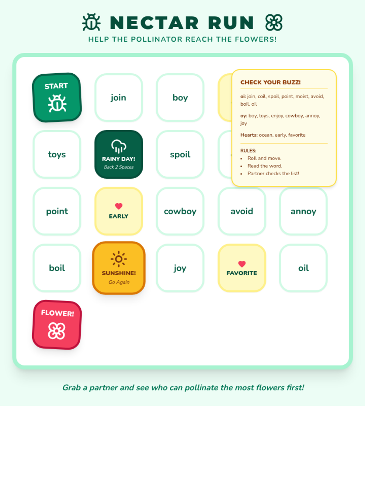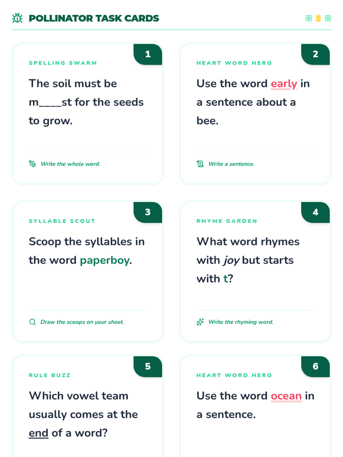 Vowel TeamsPhonetic patterns where two vowels work together to represent a single sound, such as long A in "rain" or long E in "leaf." Strengthens decoding skills and spelling proficiency through systematic practice with common vowel combinations.