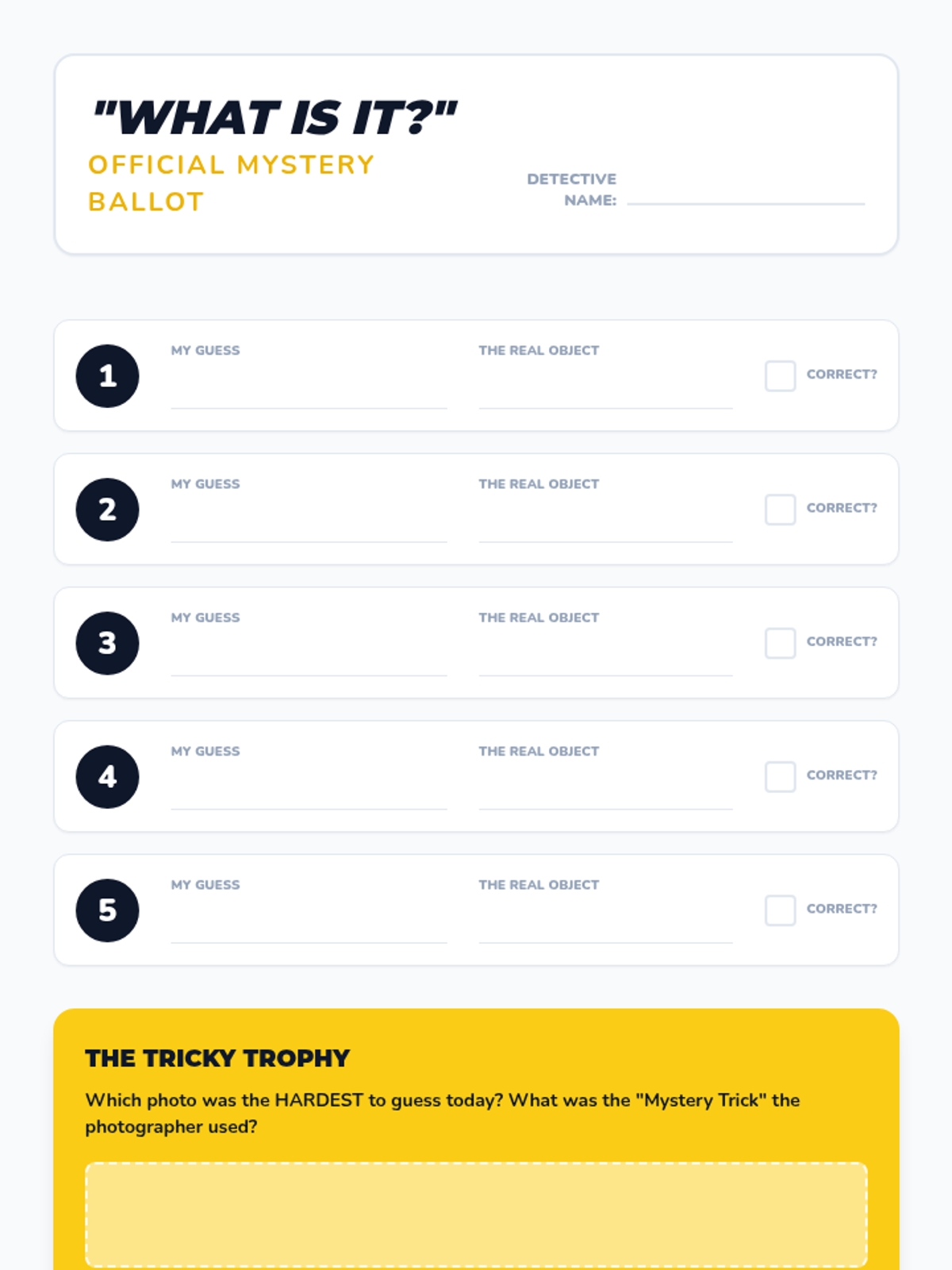 Students curate their abstract photos and participate in a class guessing game to discuss visual cues and abstract thinking.