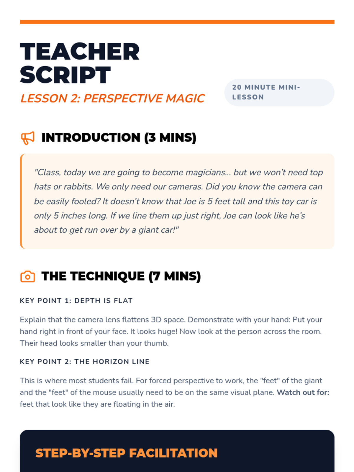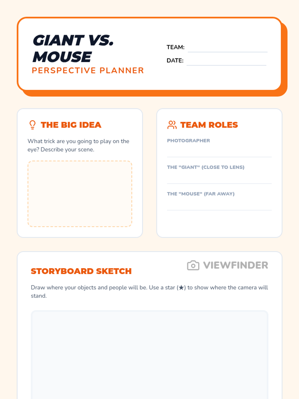 Learners discover optical illusions and experiment with distance to create forced perspective photographs where scale is distorted.