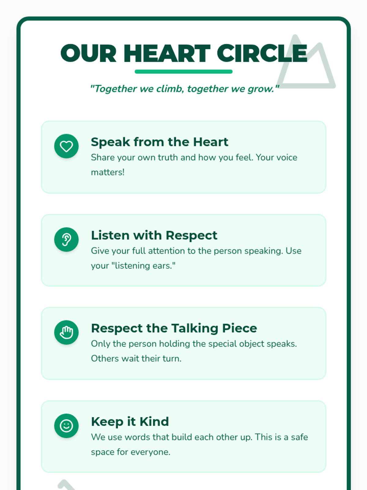 Focuses on kindness toward classmates and respectful communication with teachers to foster a positive learning environment.