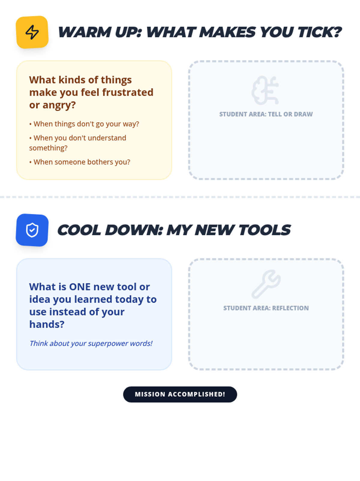 A comprehensive lesson for 3rd graders on emotional regulation, safety boundaries, and conflict resolution. Students learn to distinguish between 'Big Feelings' and 'Harmful Actions' while building a 'Success Strategy' toolkit.