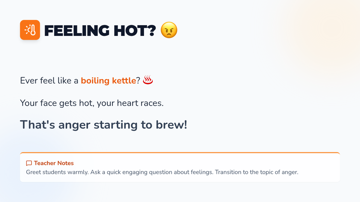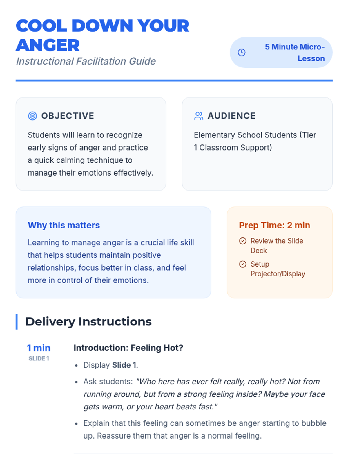 A quick 5-minute lesson to help elementary students identify early signs of anger and learn the S.T.O.P. technique to calm down before anger escalates.