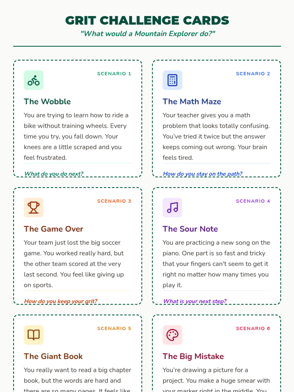 A midpoint review lesson designed to help students assess their progress in coping skills, update their personal strategies, and reflect on their growth. Using a 'Summit Scout' expedition theme, students evaluate their mastery of three core goals and refine their personal coping toolbox.