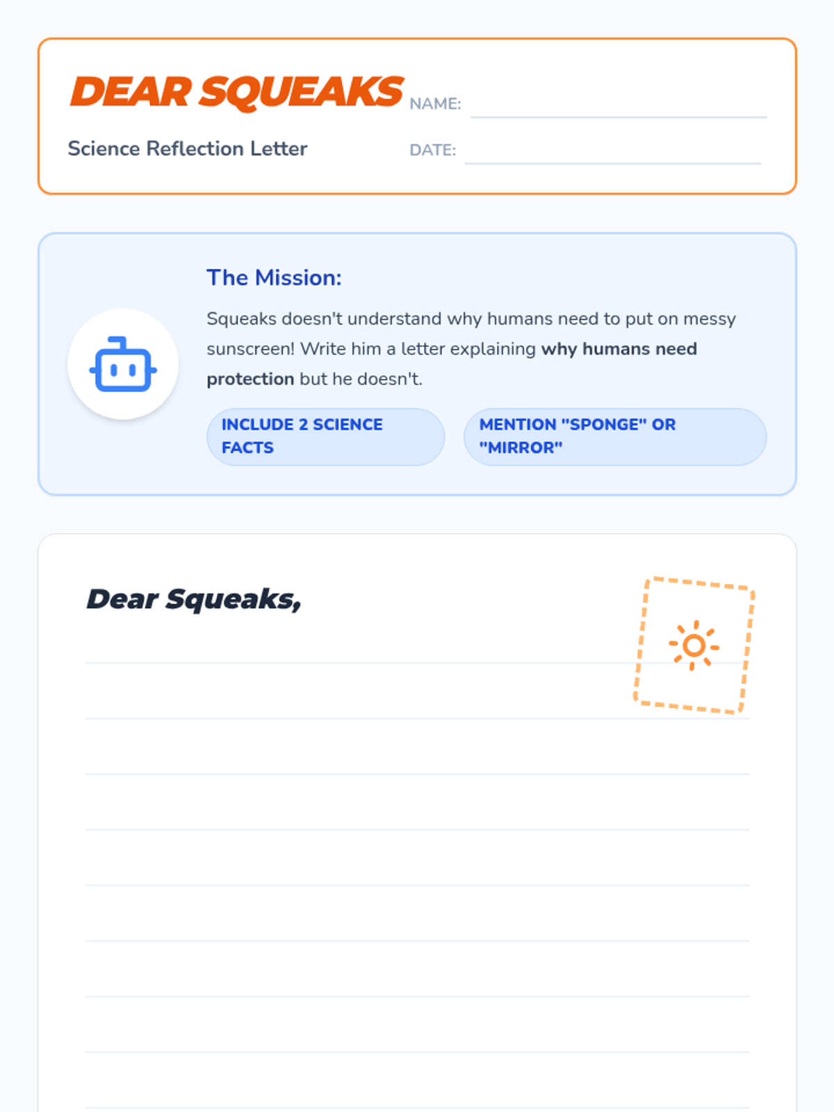 A high-energy sun safety lesson where students learn the '10-to-4 rule', identify peak sun hours through shadow observation, and design their own 'Sun Safe Hero' persona to practice real-world prevention strategies.