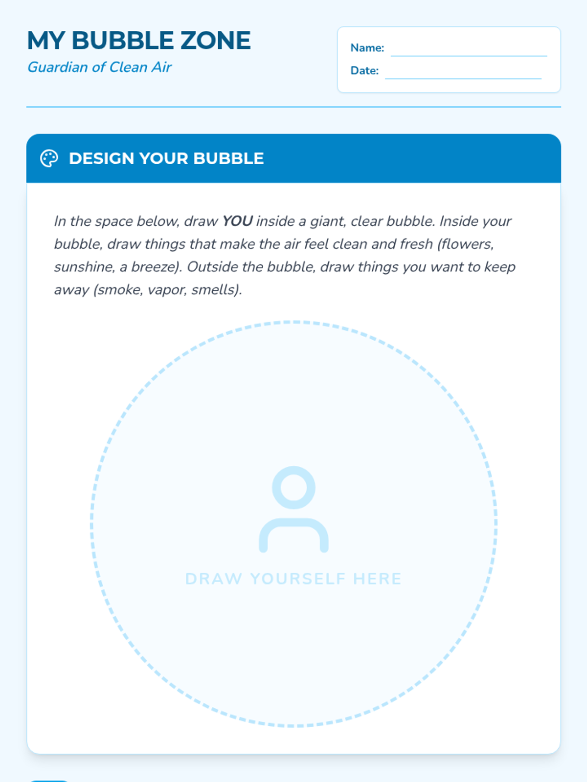 Students use 'bubbles' to visualize their personal space and learn how secondhand smoke invades that personal zone.