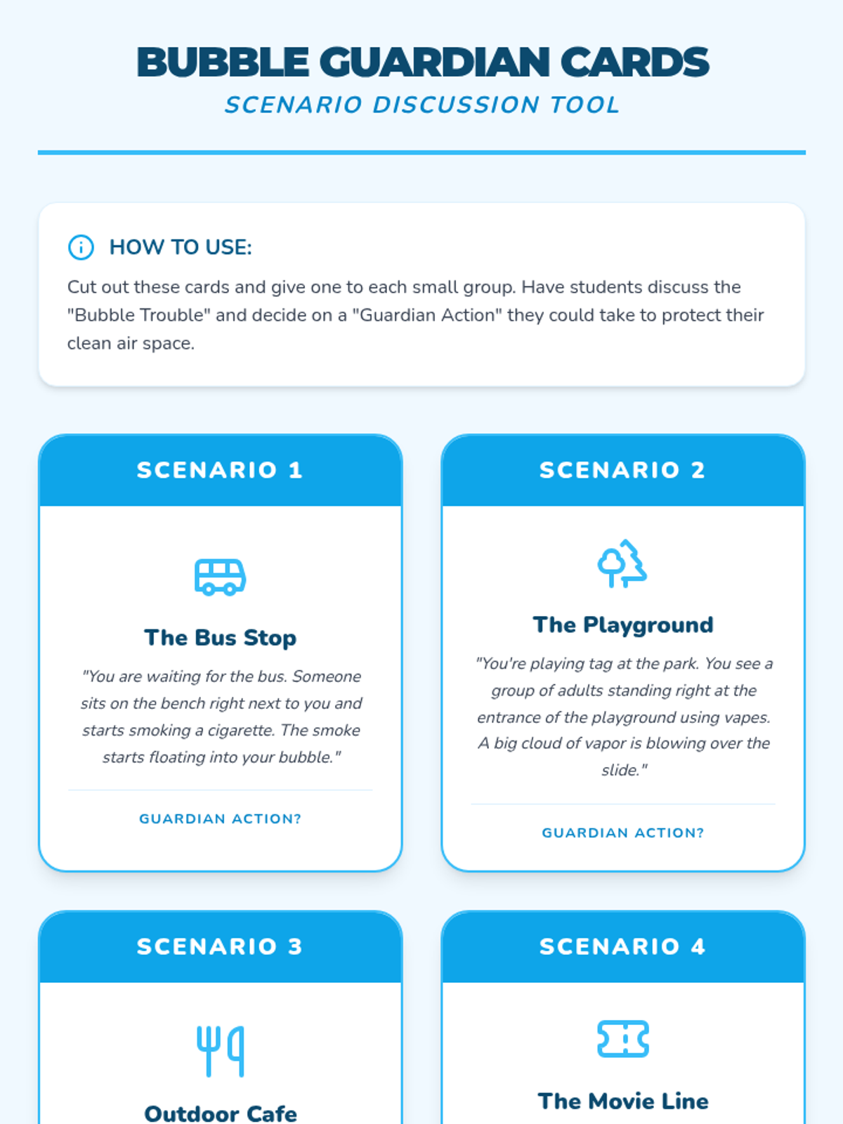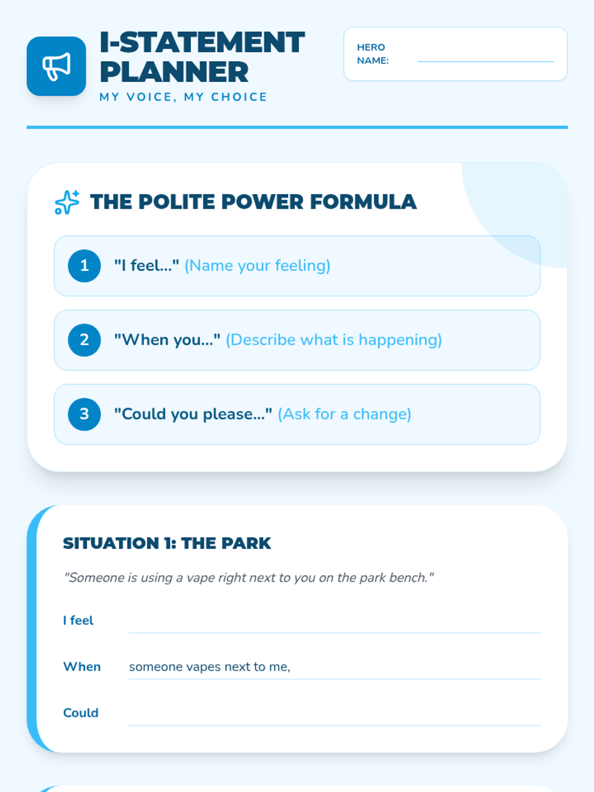 Students learn and practice respectful 'I' statements to advocate for their right to breathe clean air in public spaces.