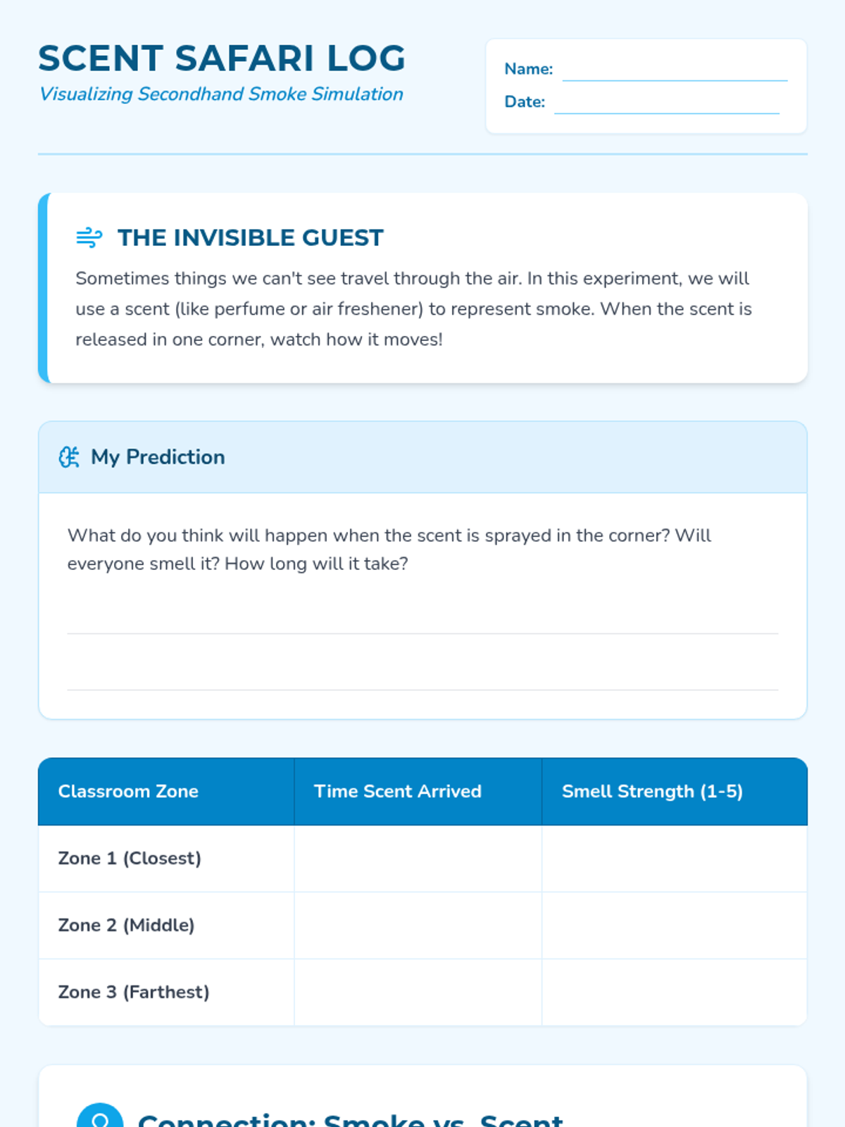 Students observe how scent travels to understand the spread of secondhand smoke and its impact on everyone in a shared space.