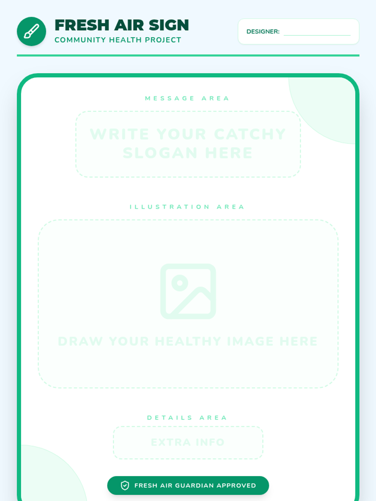 Students create positive signage that celebrates fresh air zones, moving from 'No Smoking' to 'Fresh Air Zone' messaging.