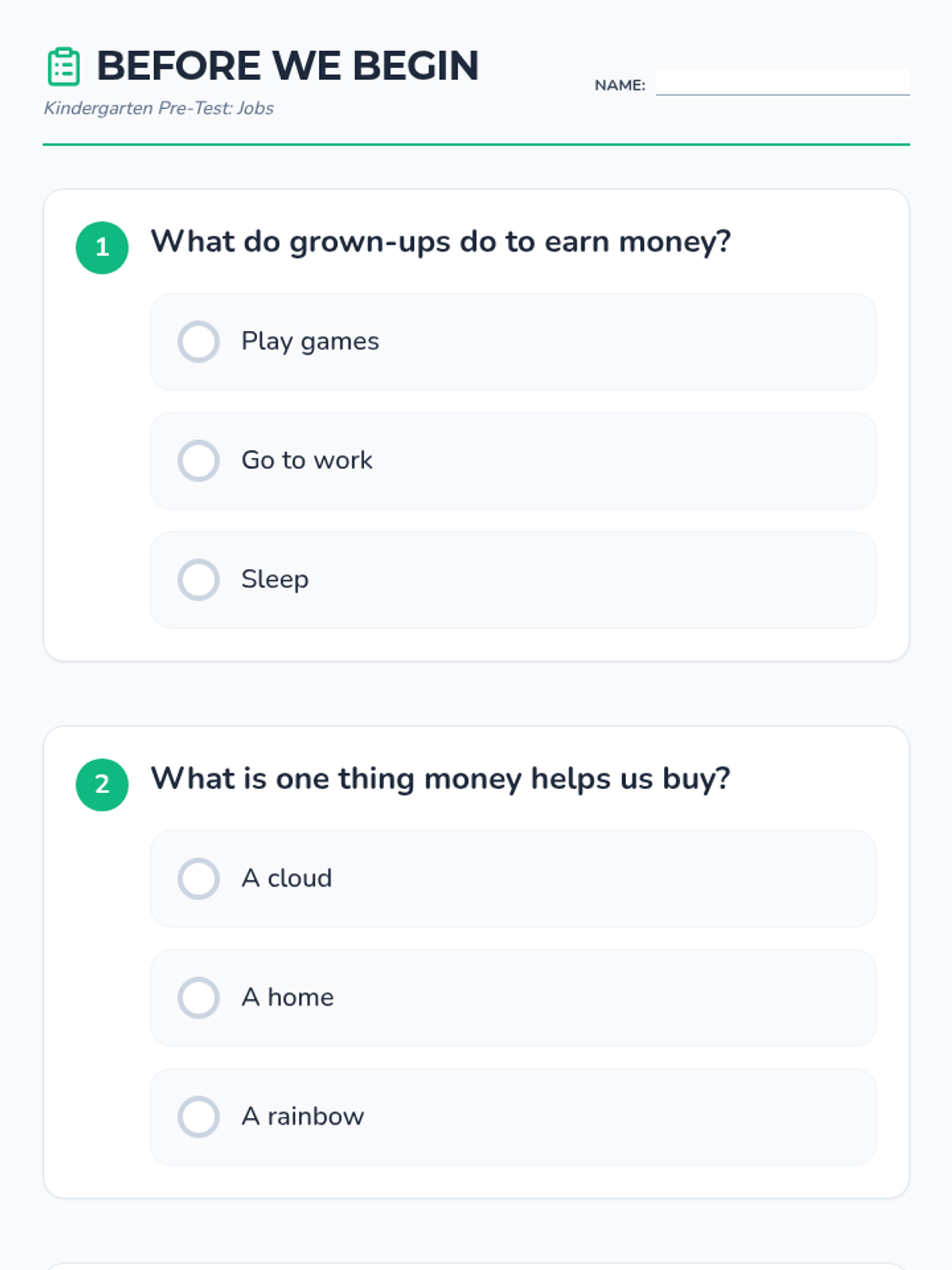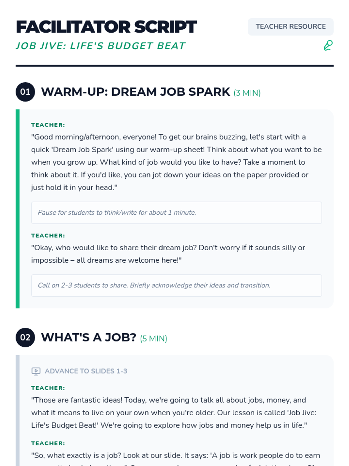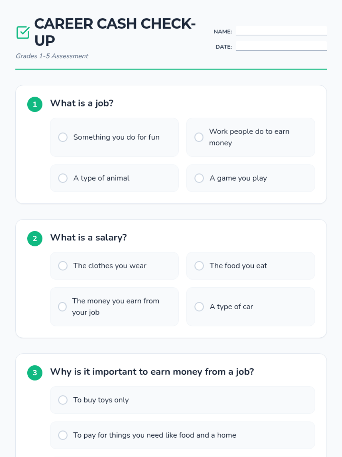A 30-minute lesson introducing K-5th grade students to careers, salaries, and the cost of living independently through interactive discussion and budget-themed activities.
