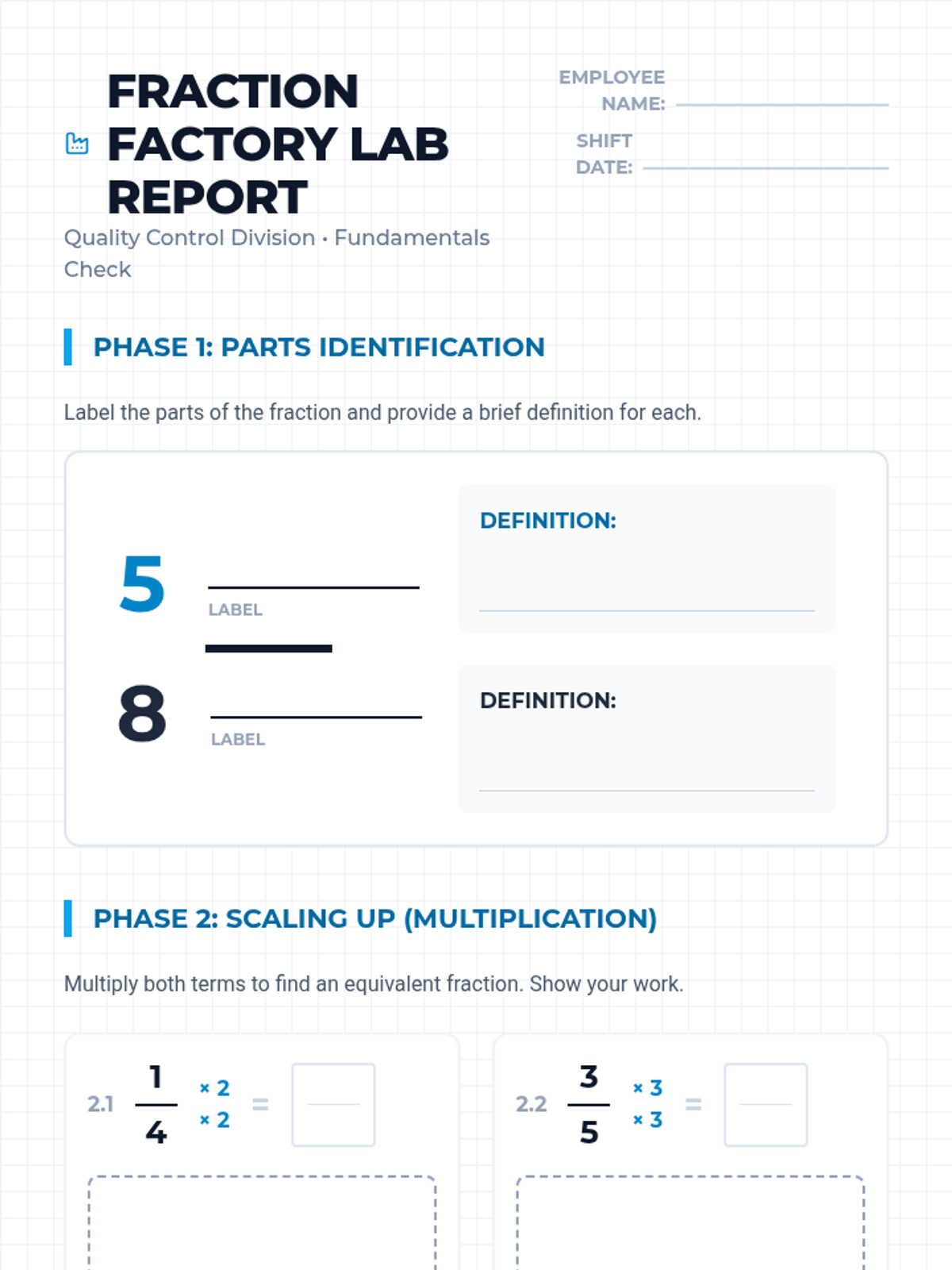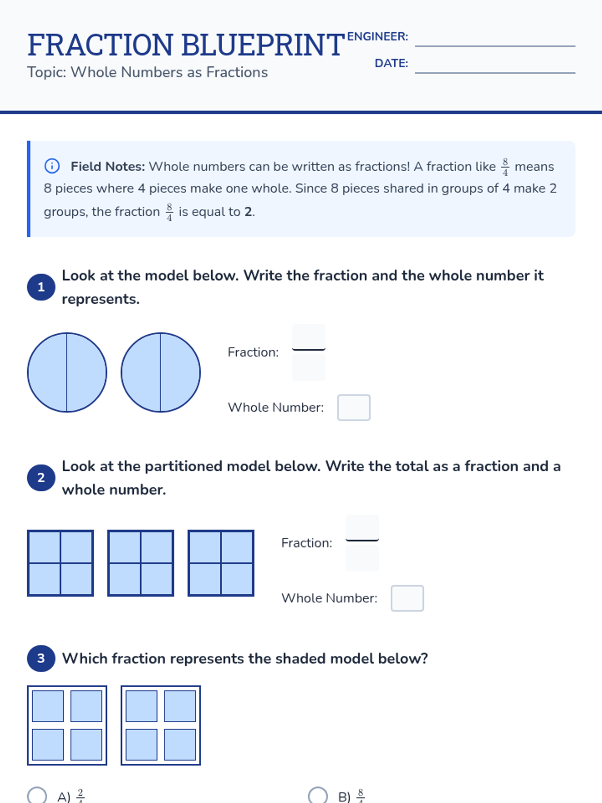 Fraction Blueprint Practice Worksheet