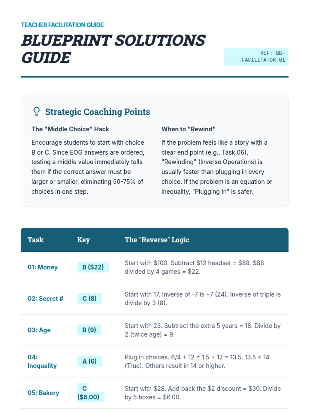 Division Blueprint Answer Key