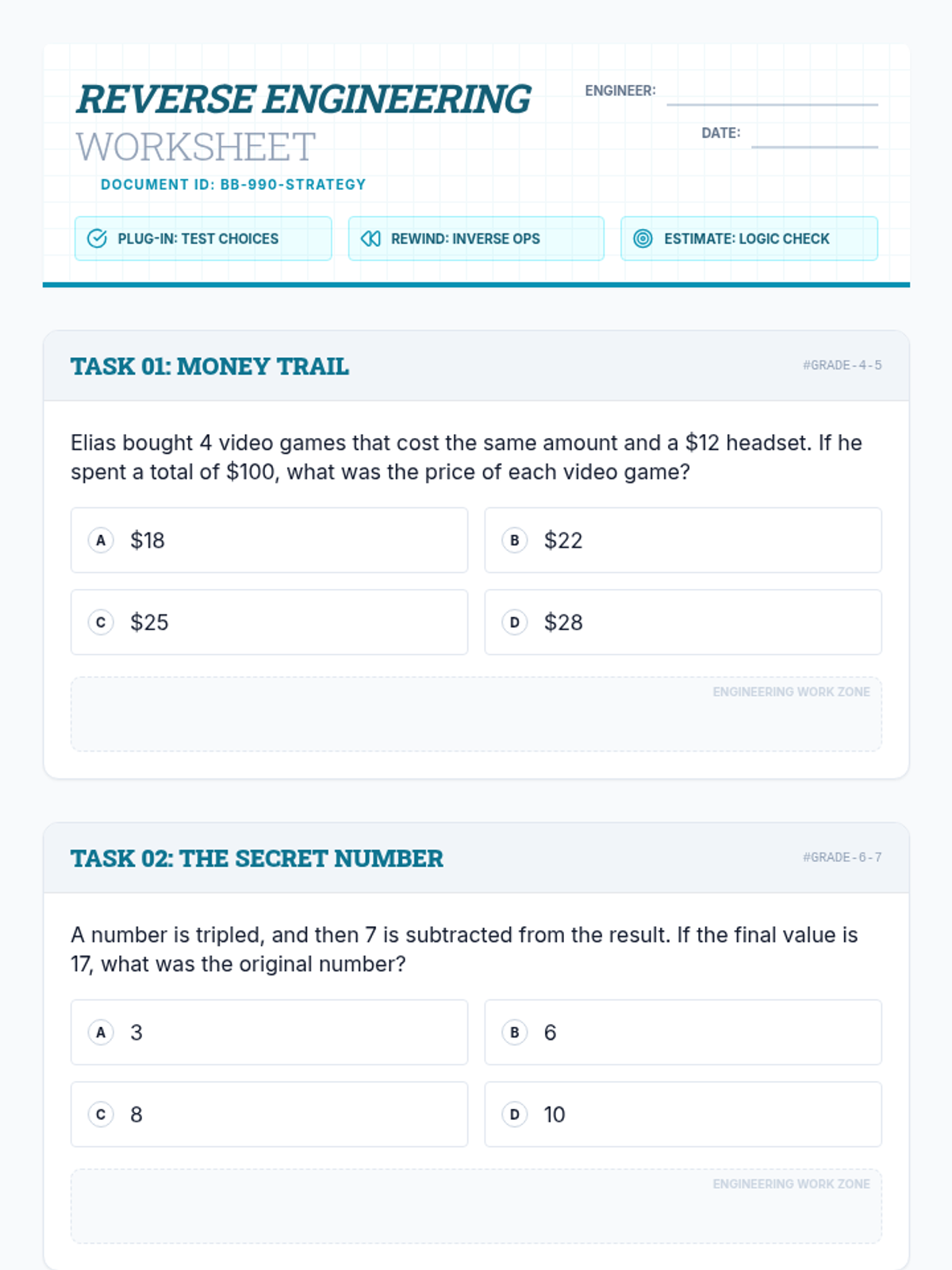 An engaging introduction to multi-digit multiplication, division, and order of operations through a spy-themed decoding challenge. Students act as 'Math Detectives' to solve a series of problems and reveal a hidden message.