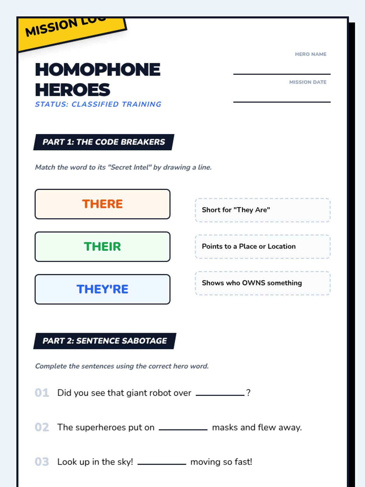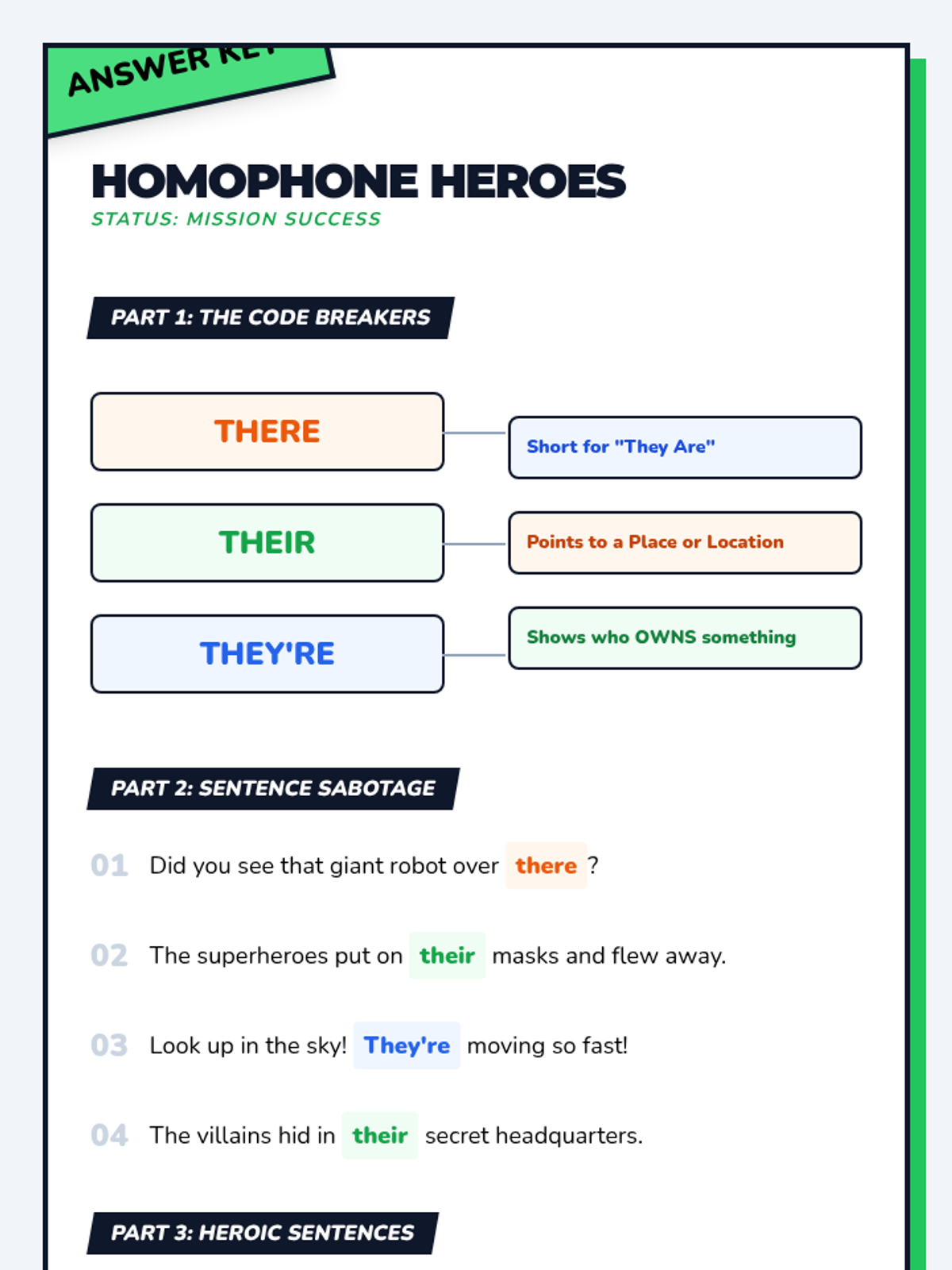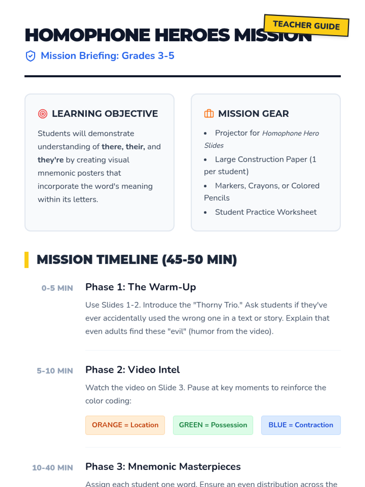 A fun, comic-book themed lesson where students conquer the 'thorny' issue of there, their, and they're through visual mnemonics and creative poster design.