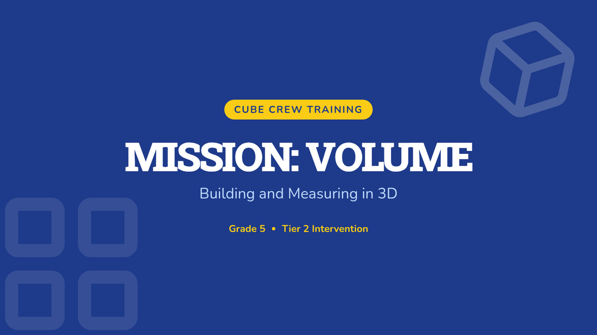 A Tier 2 intervention lesson focused on the foundational concepts of volume, including unit cubes, cubic units, and packing solids. Designed for small group support with scaffolded visual aids and hands-on manipulative integration.