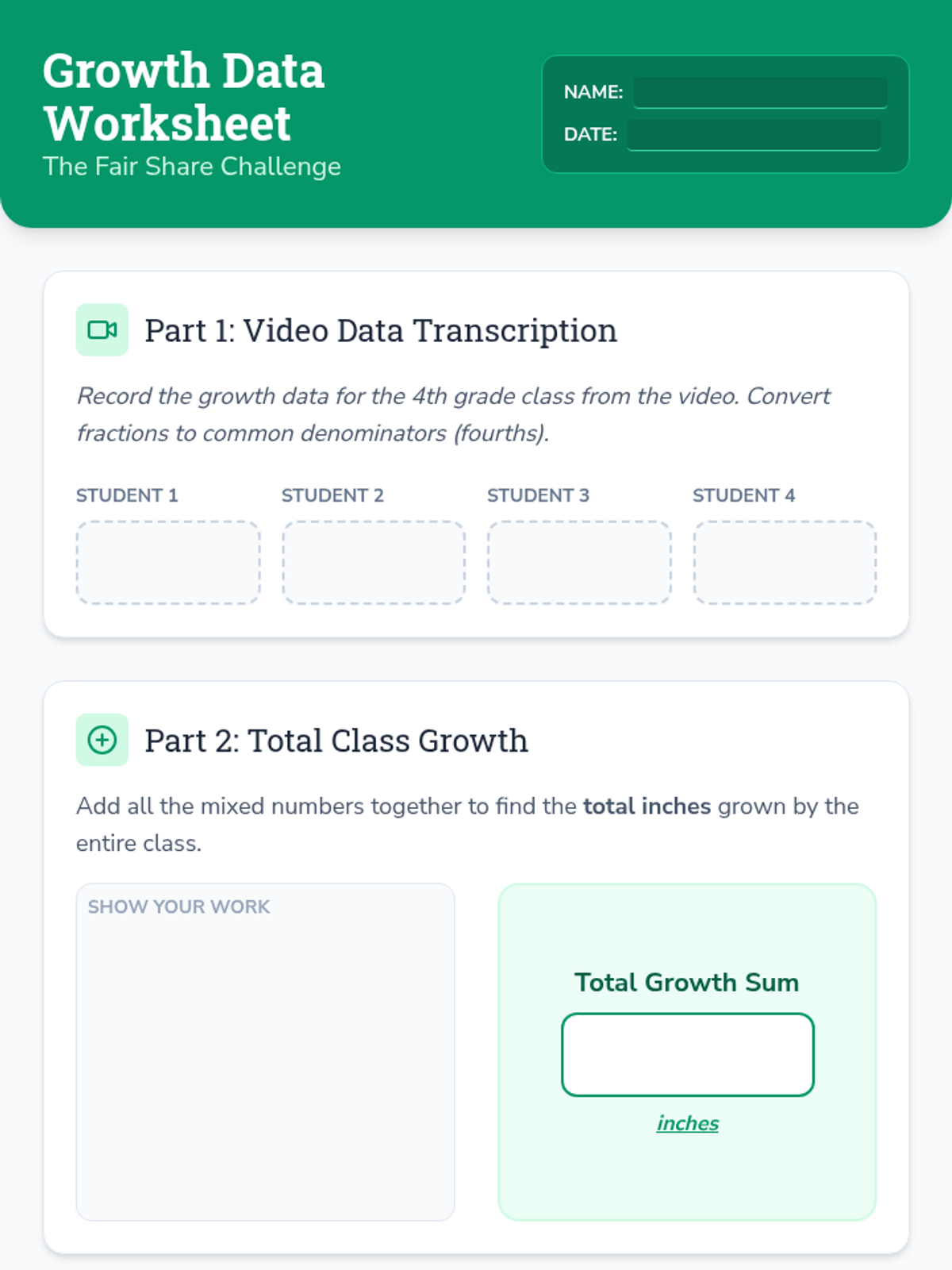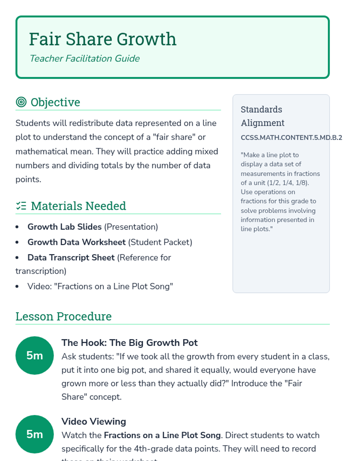 Students explore the concept of mean through the 'fair share' method by redistributing growth data from a line plot. They will transcribe data from a video, calculate the total sum, and divide to find the average.