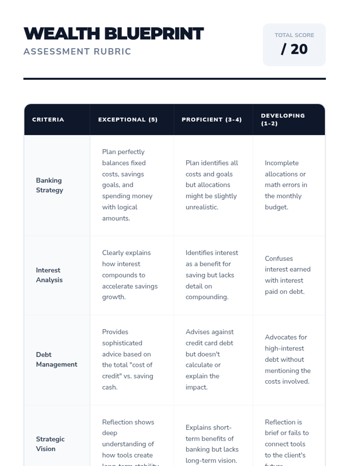 A culminating project where students design a comprehensive financial plan for a fictional client, synthesizing their knowledge of savings, interest, and responsible borrowing.